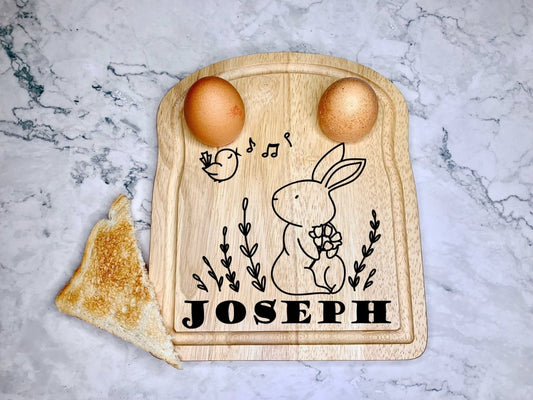 Personalised Dippy Egg Board with Easter Bunny and Song Bird