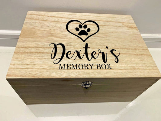 Caja de recuerdos con memoria de huella de mascota de madera grabada personalizada grande