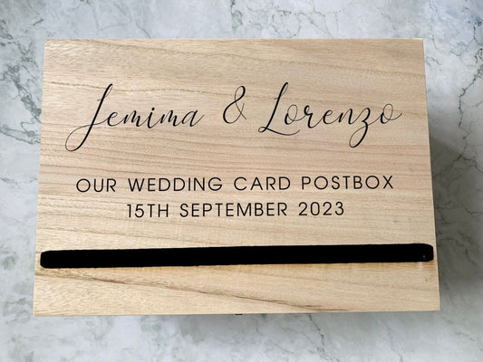 Buzón grande personalizado para tarjetas de boda de madera grabada