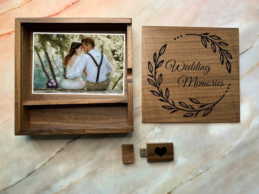 Memoria USB personalizada de recuerdos de boda con caja de madera grande en arce o nogal, 4 GB, 8 GB, 16 GB, 32 GB, 64 GB