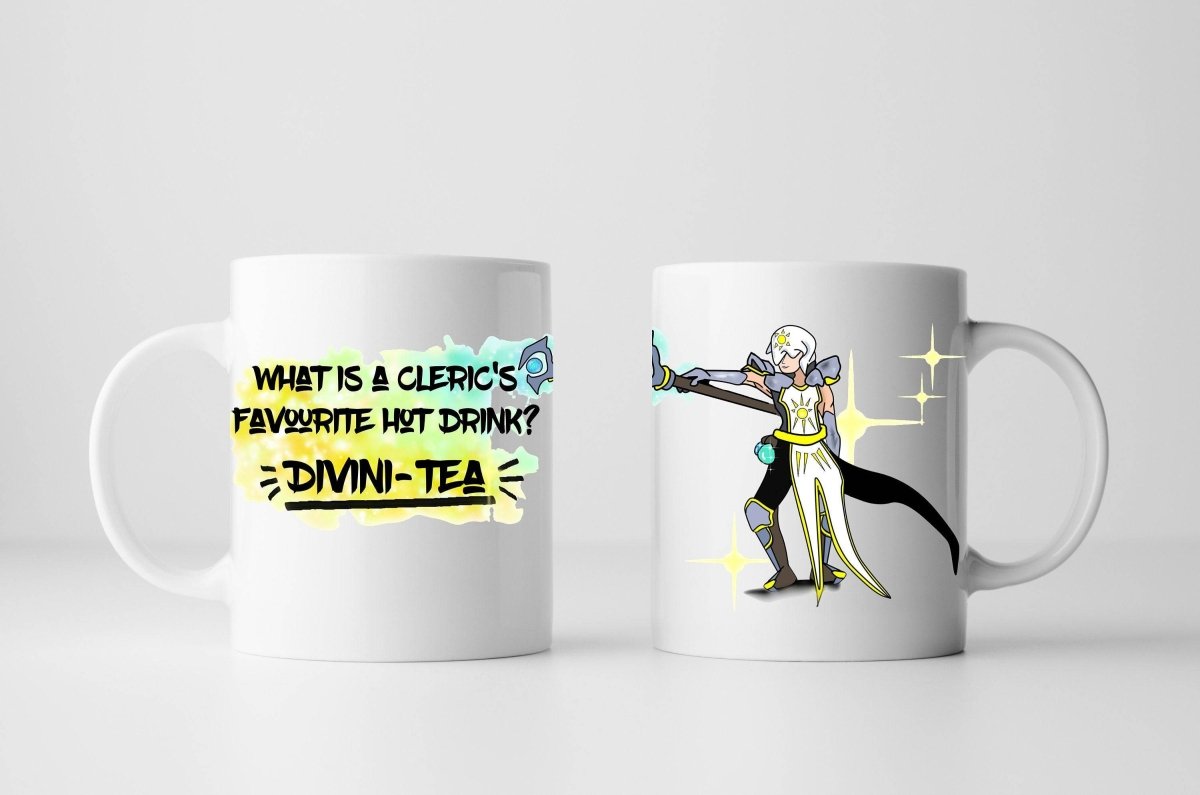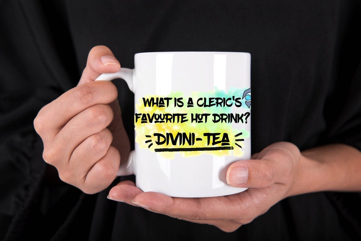 Bebida favorita de los clérigos, Divini-tea, taza de clérigo D&D, taza de broma, taza de juego de palabras