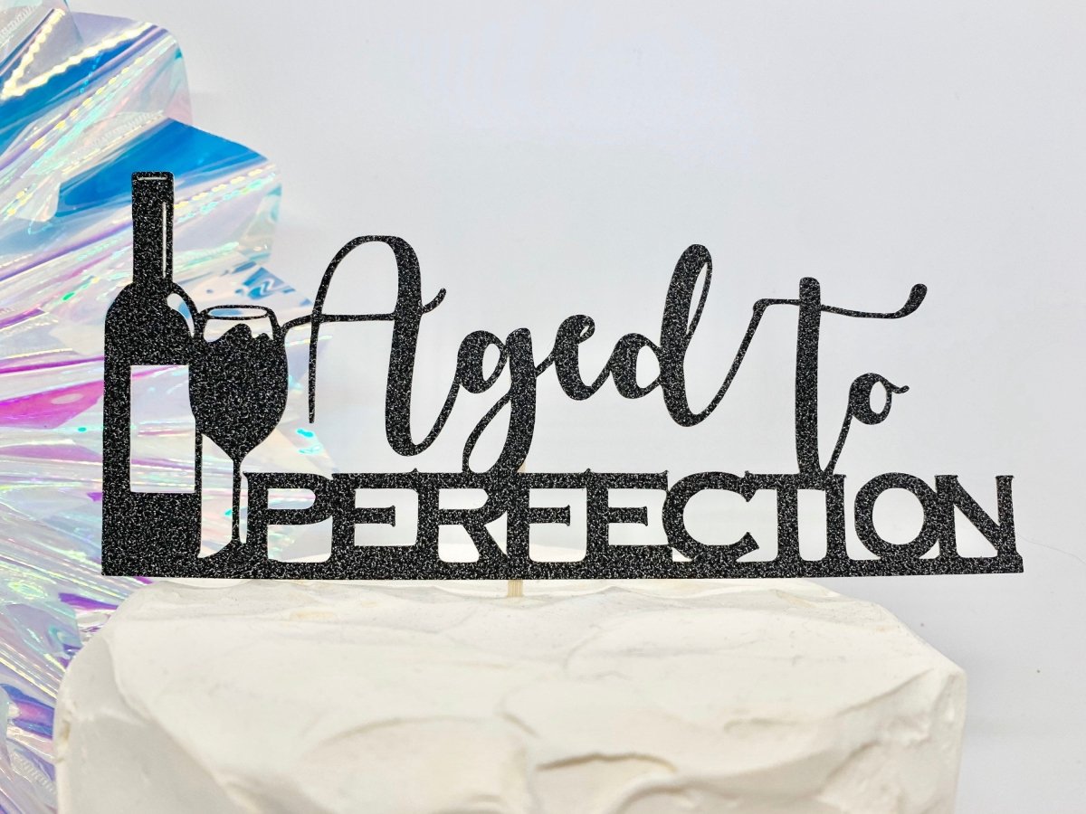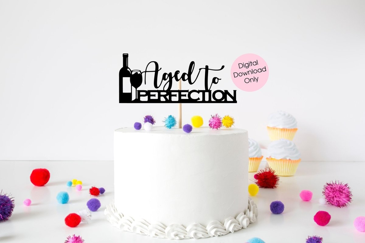 Envejecido a la perfección botella de vino cumpleaños pastel topper archivo de corte digital adecuado para Cricut o Silhouette, svg, jpeg, png, pdf