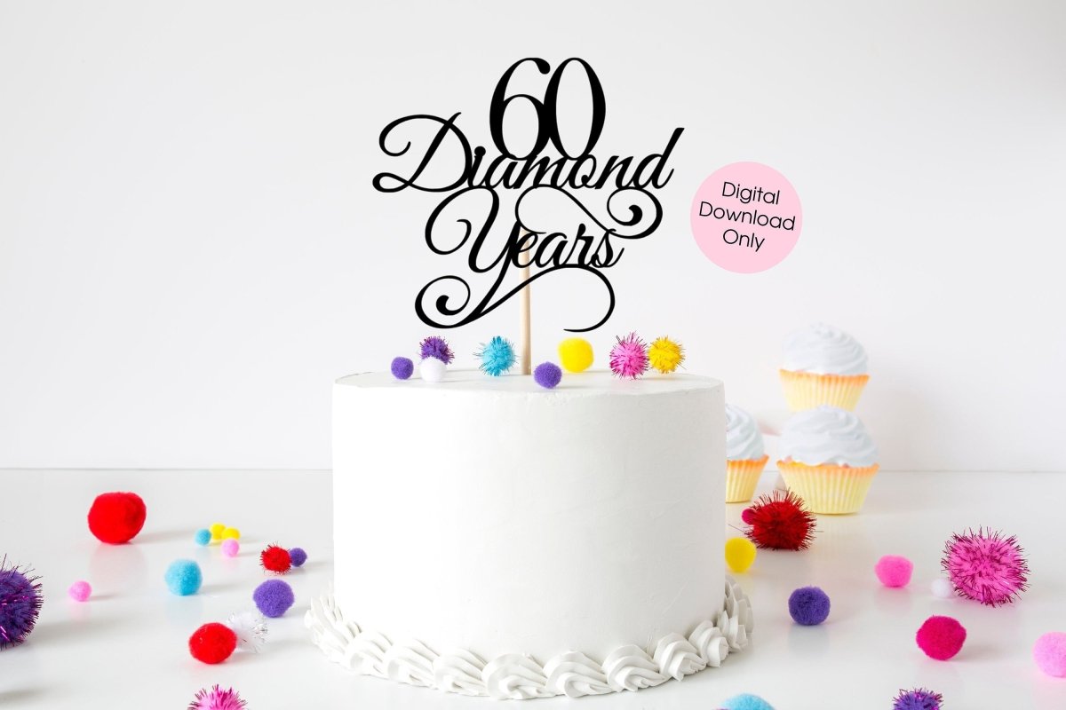 60 Sesenta Años de Diamante Aniversario pastel topper archivo de corte digital adecuado para Cricut o Silhouette, svg, jpeg, png, pdf