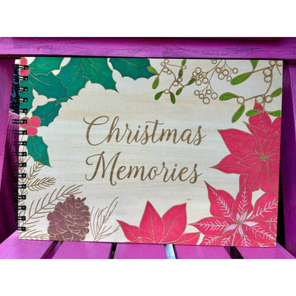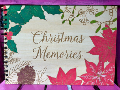 Personalised Engraved and Hand Painted Wooden Christmas Photo Album, Xmas Memories, Guestbook