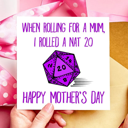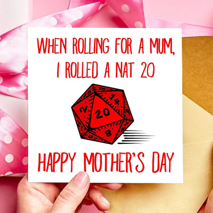 Nat 20 DnD Mothers Day Card, Critical Hit
