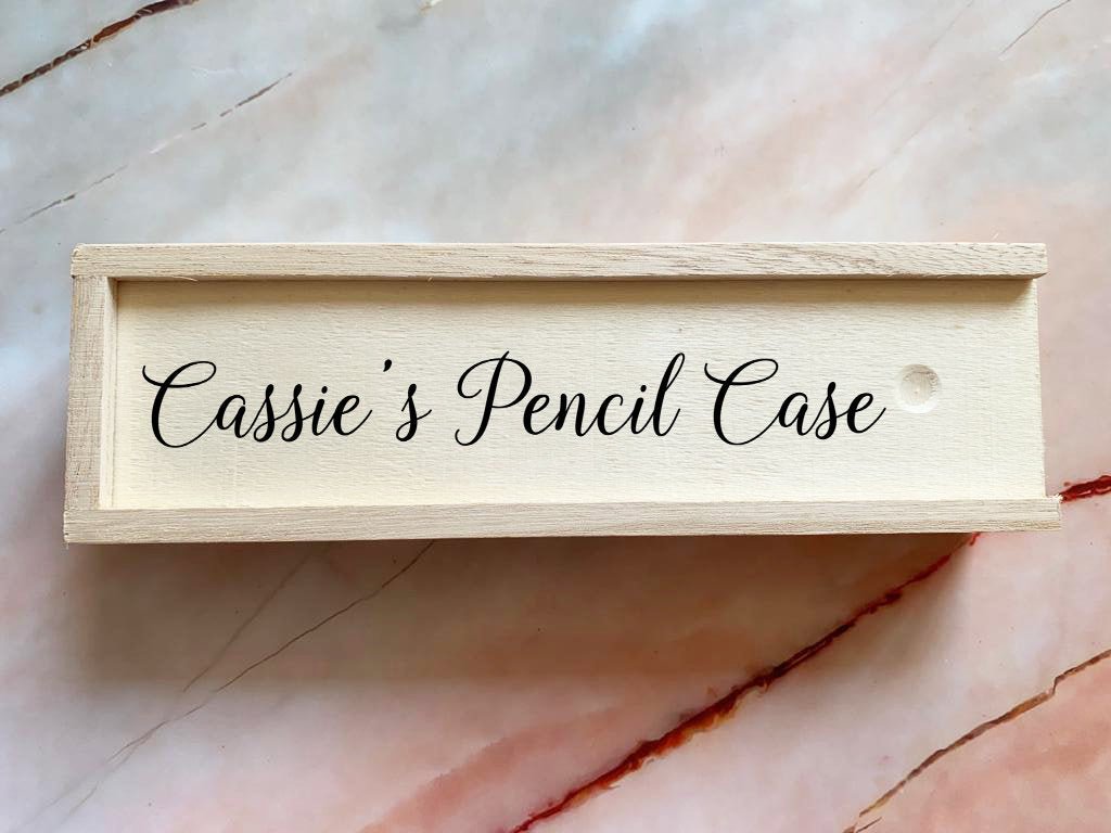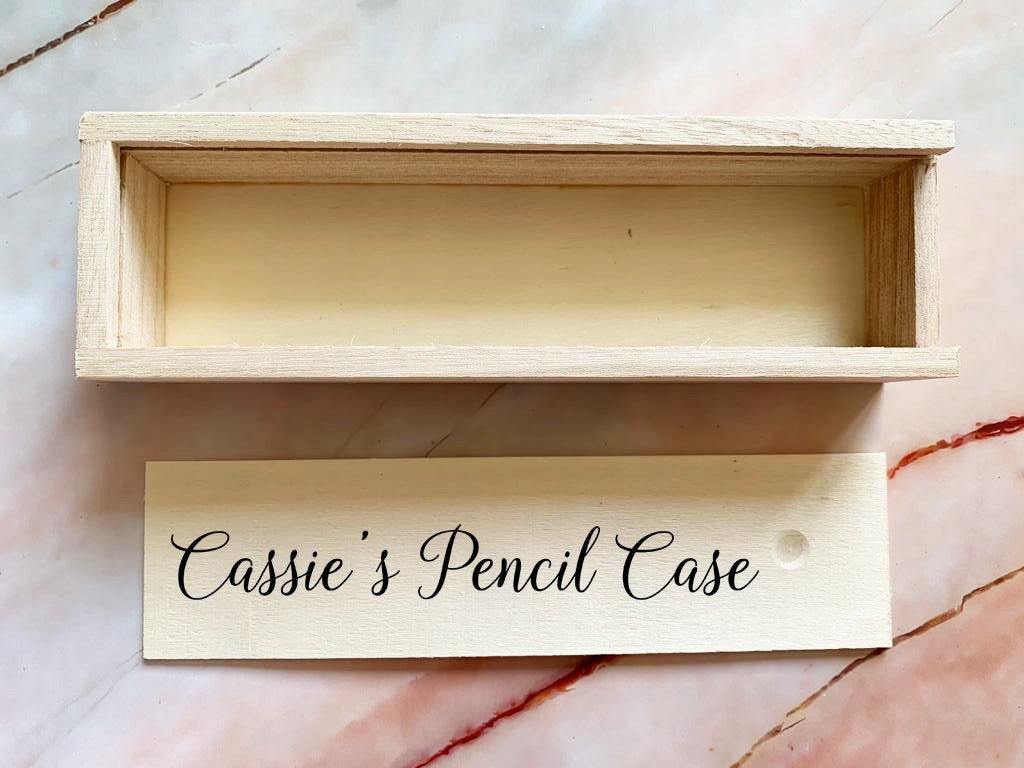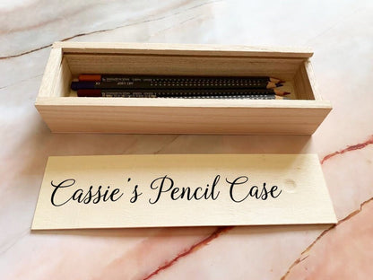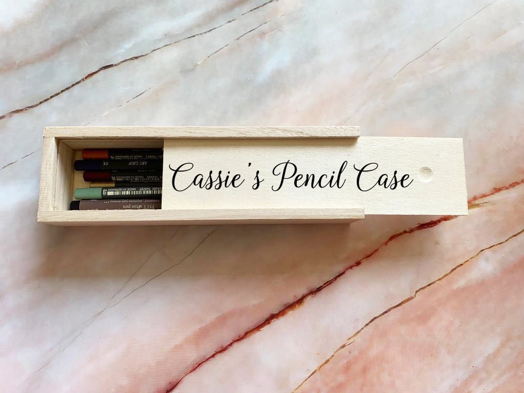 Estuche para lápices deslizante de madera grabado personalizado de 20 cm, estuche para bolígrafos, regreso a la escuela