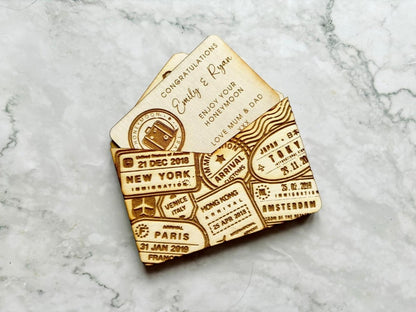 Personalised Engraved Travel Envelope Gift Card Holder, Travel Gifts, Gift Voucher Holder, Honeymoon Gift Voucher