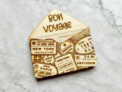 Personalised Bon Voyage Travel Envelope Gift Card Holder