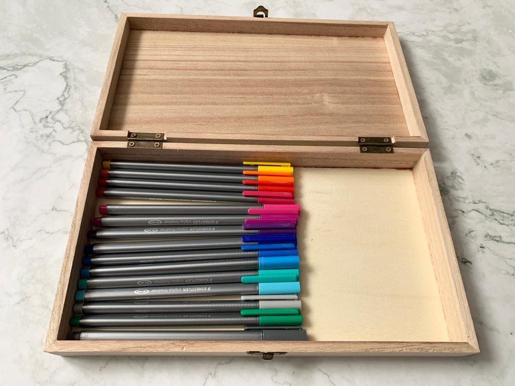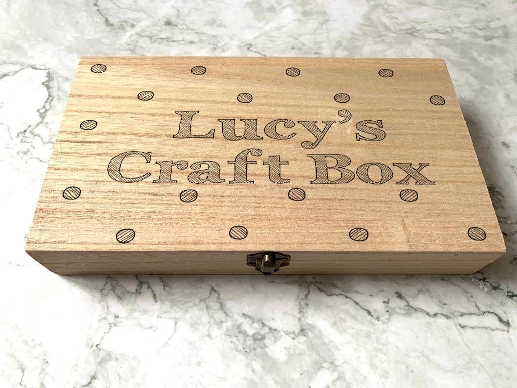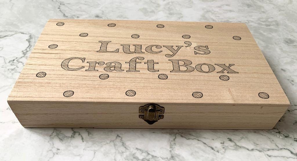Esta caja de arte grabada con láser profesionalmente es la manera perfecta de almacenar materiales para manualidades.
