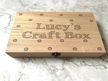 Caja de arte o costurero de madera grabada personalizada con lunares