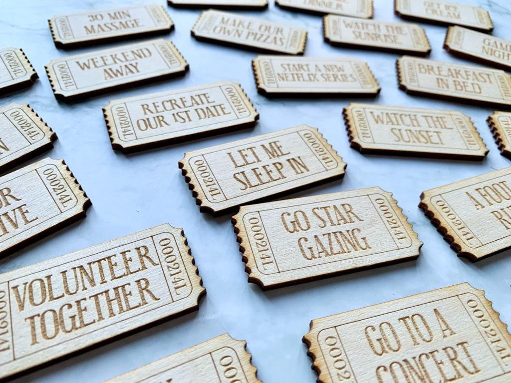 Fichas de San Valentín de madera grabadas personalizadas, fichas de noche de cita, fichas de fecha, fichas grabadas, fichas de amor