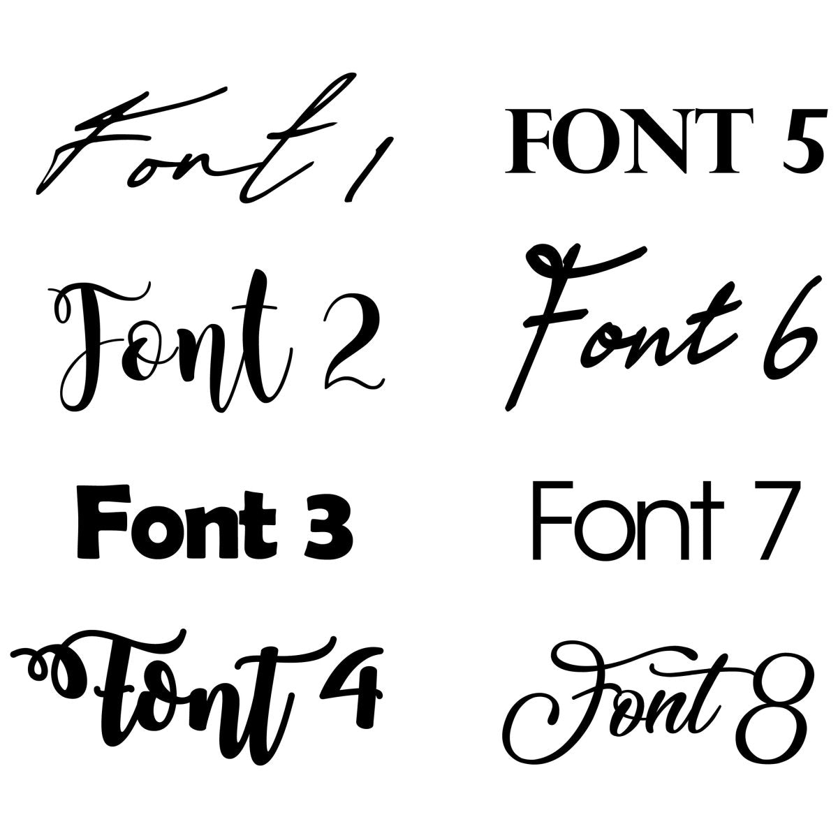 Múltiples diseños y fuentes para elegir, o si está interesado en un diseño personalizado, póngase en contacto.