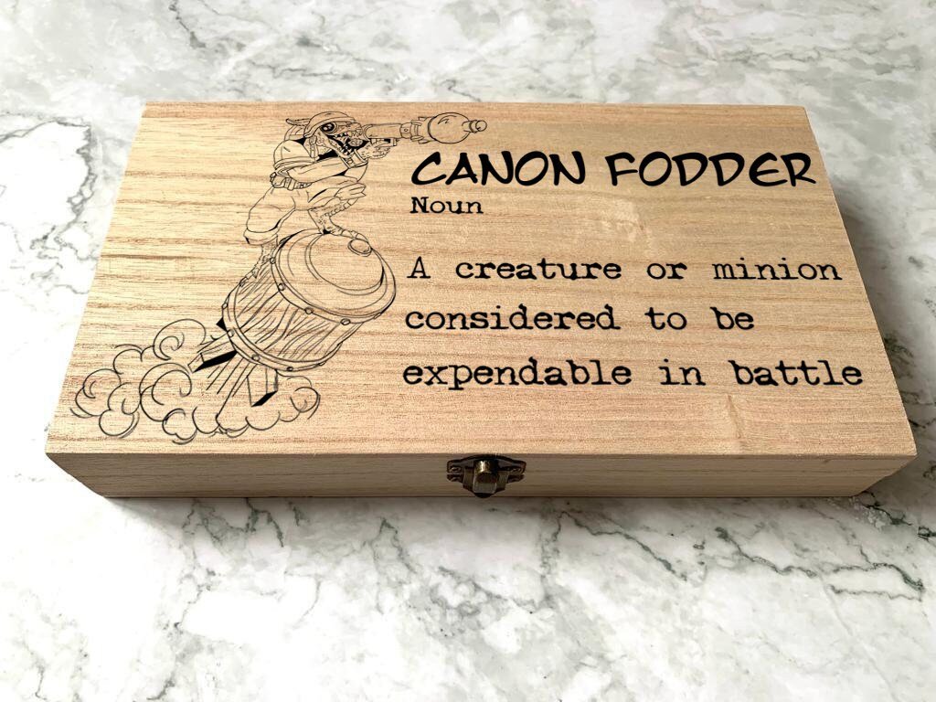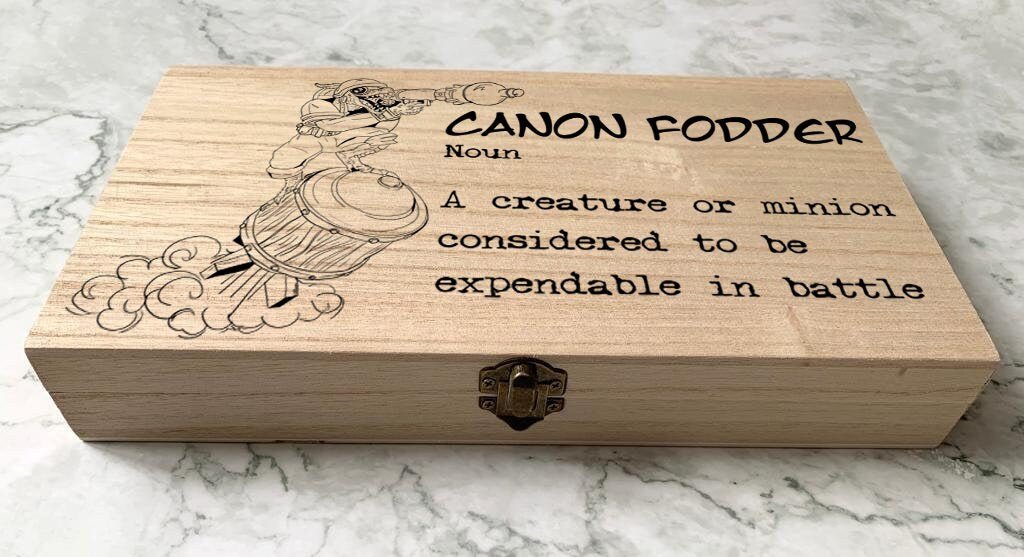 Caja de dados Kobold de mazmorras y dragones DnD grabados personalizados, definición de Canon Fodder, Kobold, Minion, prescindible