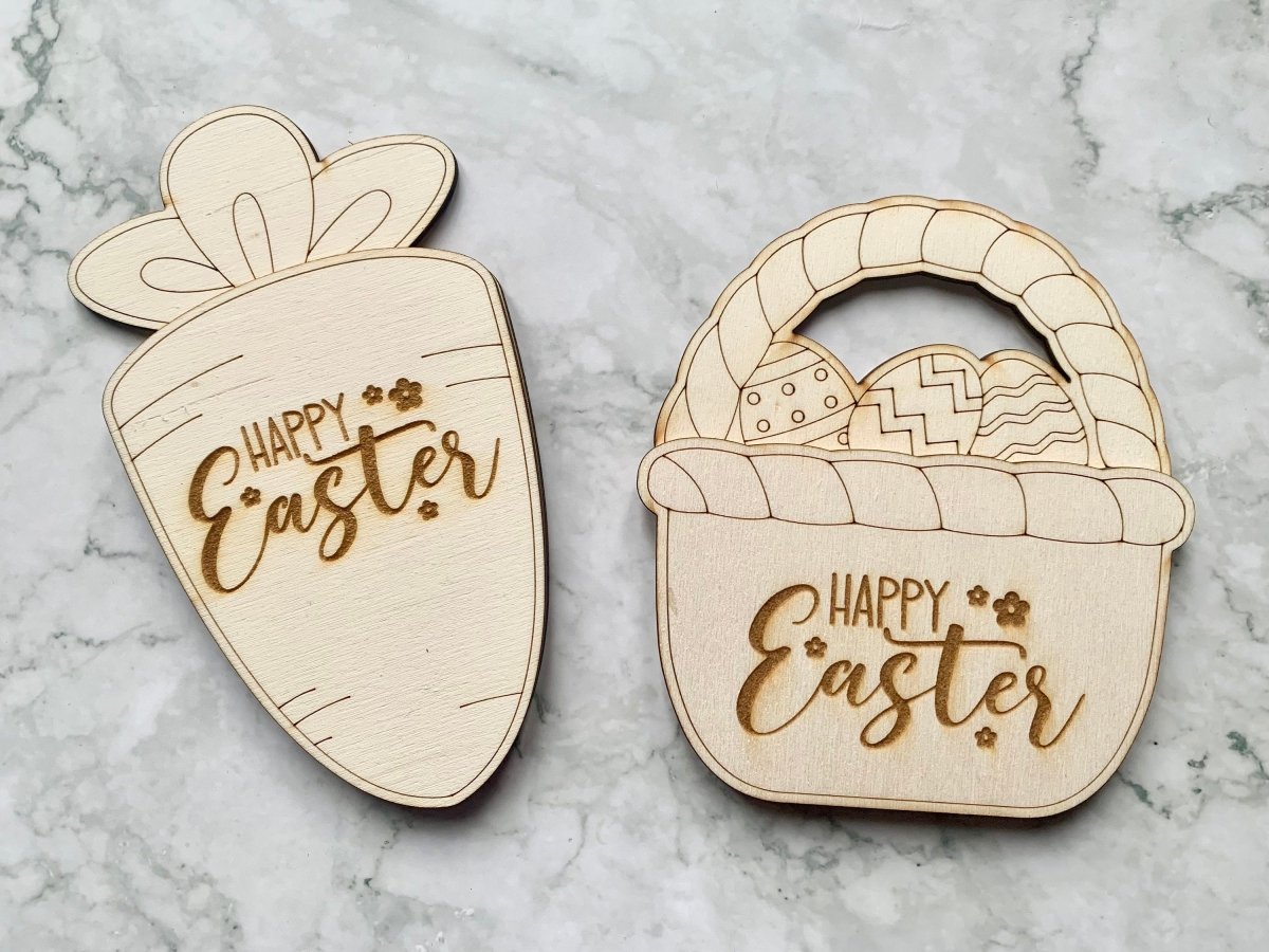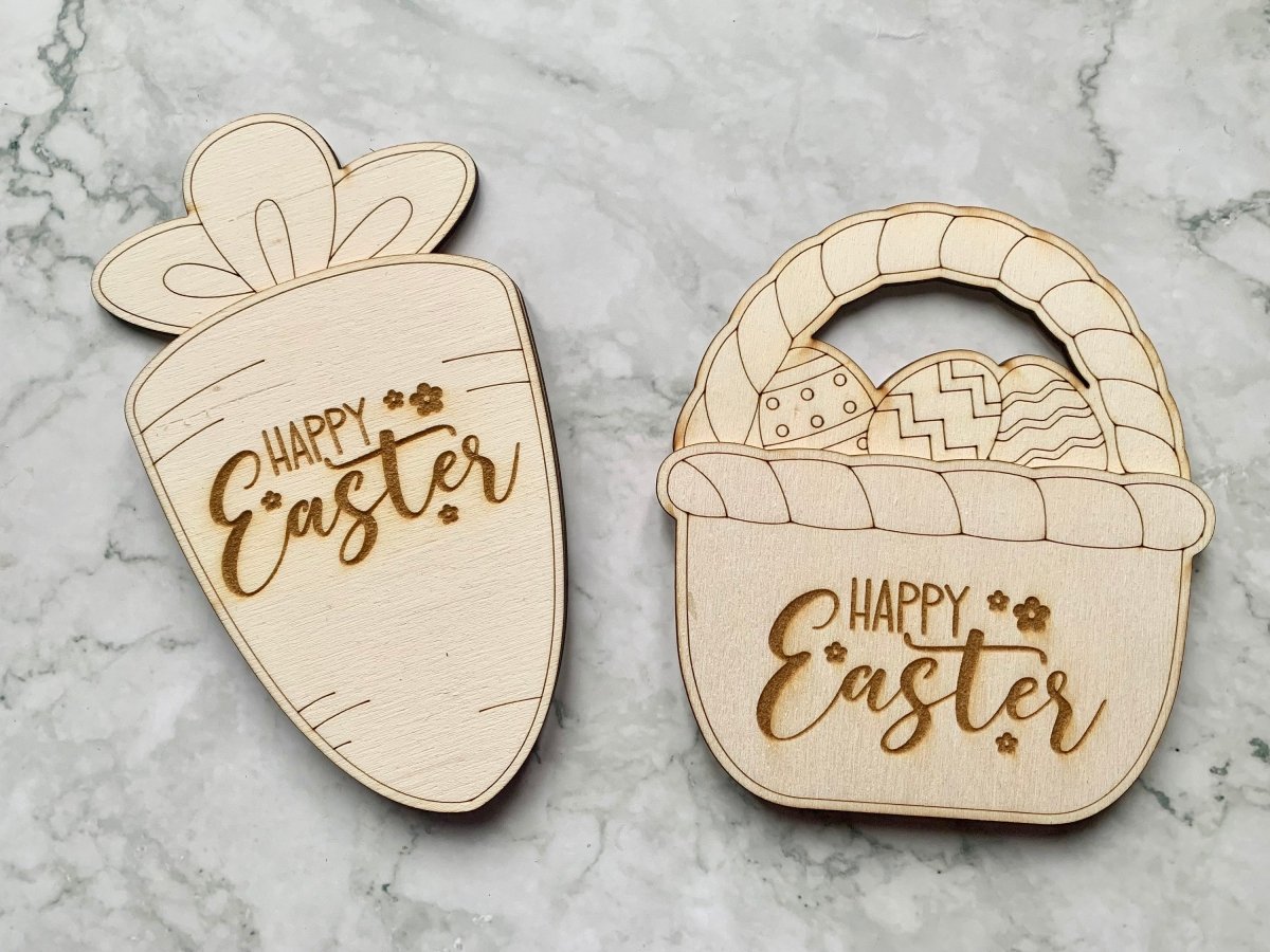 Titular de tarjeta de regalo de Pascua grabado personalizado, Titular de vale de regalo, Cesta de huevos de Pascua, Zanahoria para conejito de Pascua