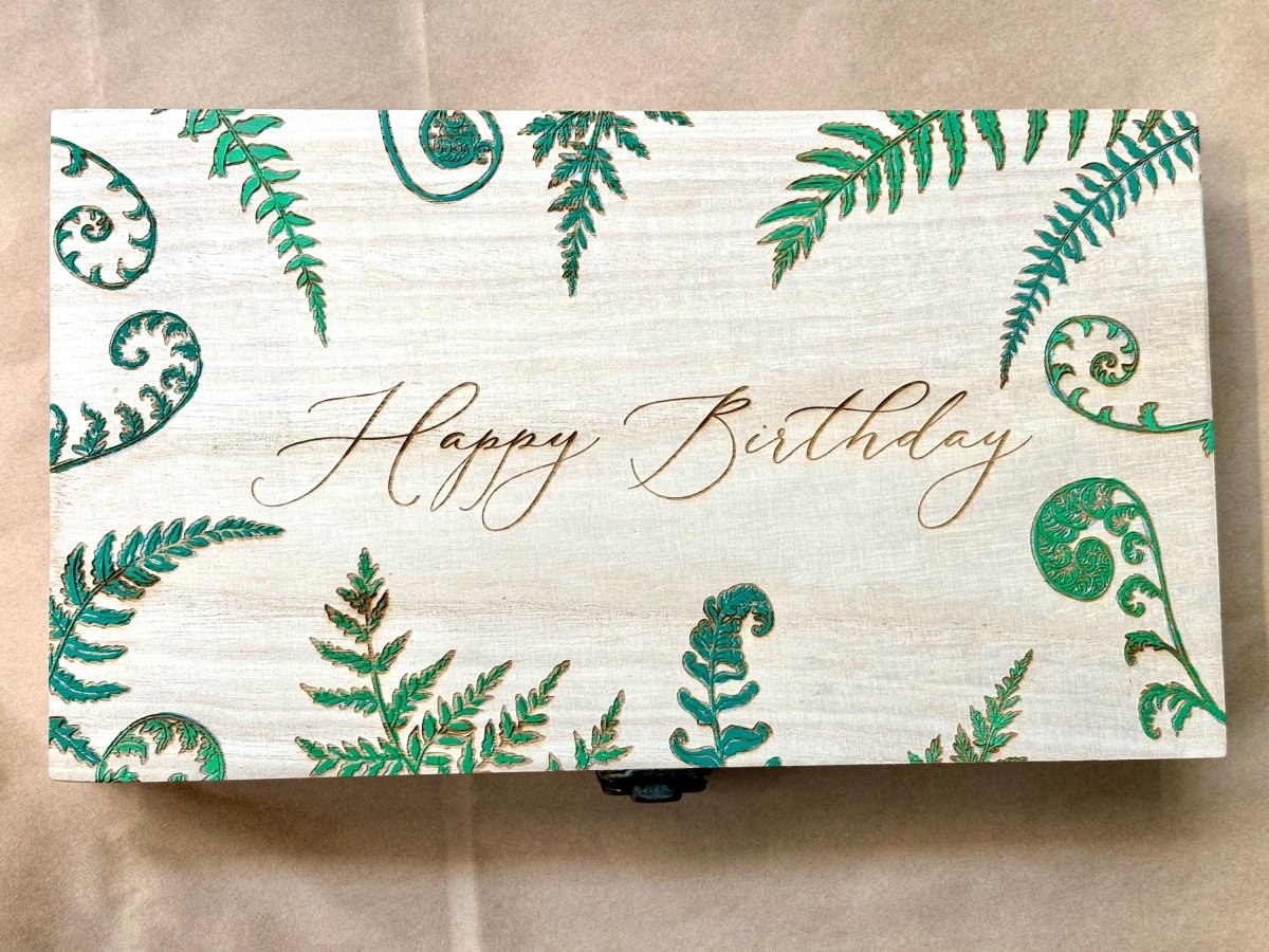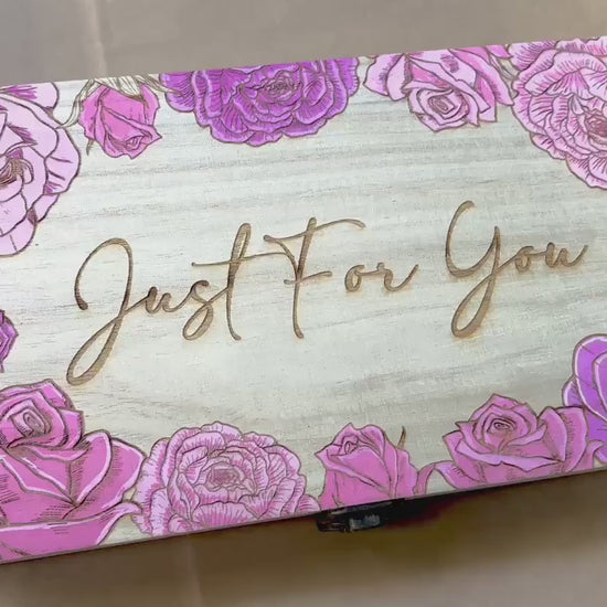 This beautifully engraved and hand painted wooden gift box can be personalised with a special message of your choice and is the perfect size to gift chocolates, photos or other special gifts.