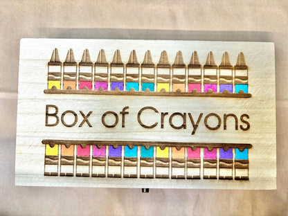 Engraved and Hand Painted Wooden Gift Box with Personalised Message. Multiple designs - Sunflowers, Roses, Ferns, Crayons