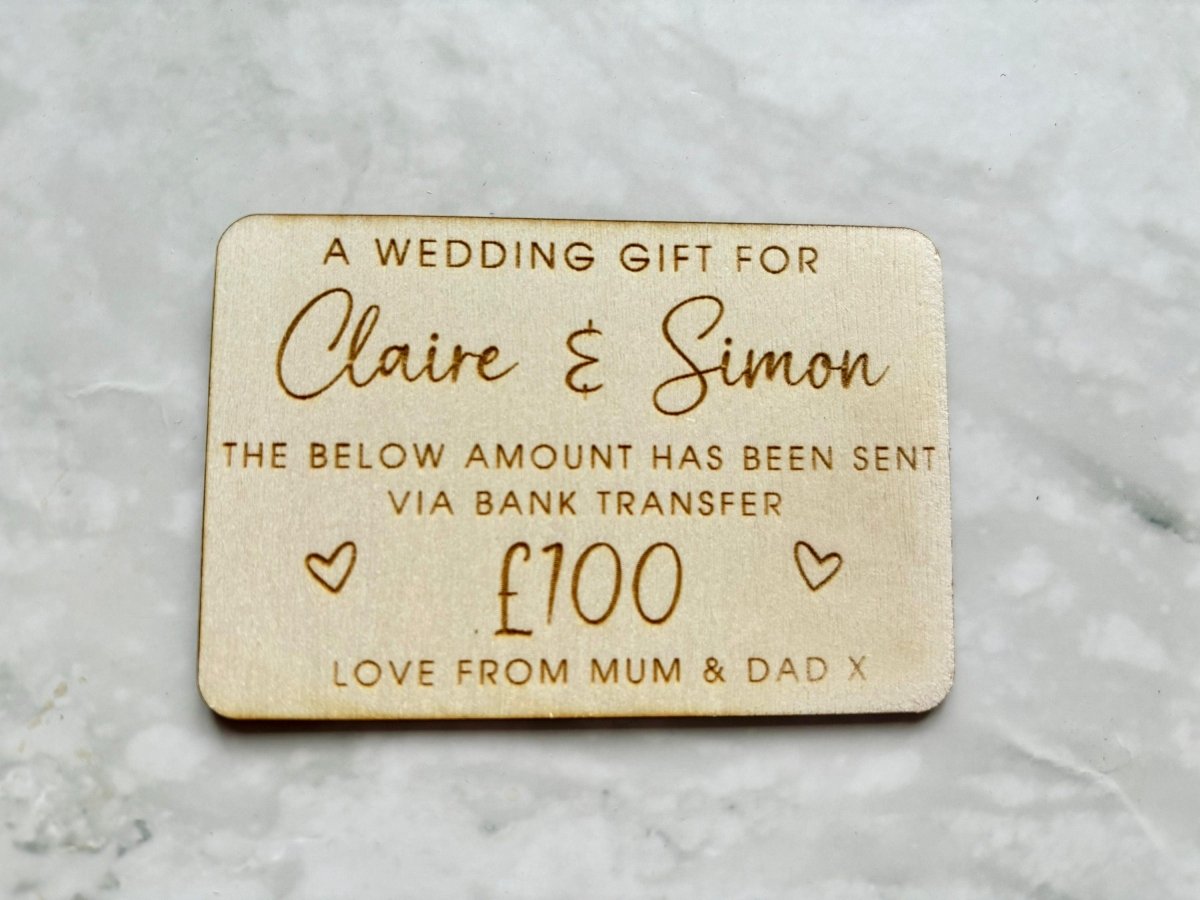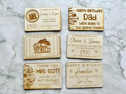Personalised Engraved Gift Card Inserts, Engraved Gift Voucher, Wedding Gift Voucher, Birthday Gift Voucher, Teacher Gift Voucher
