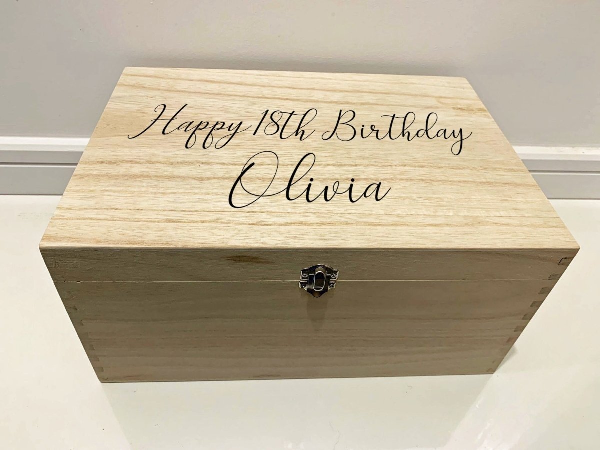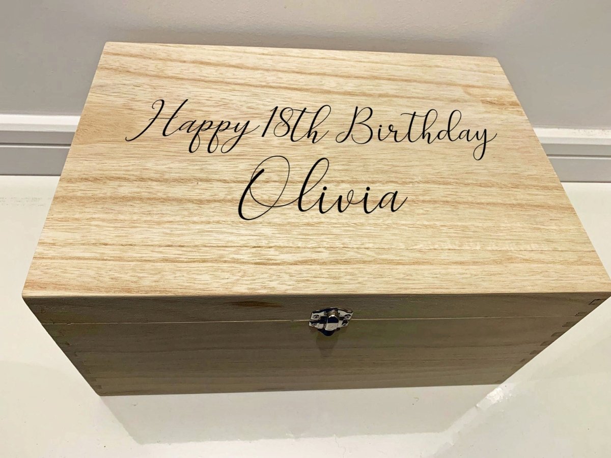 Caja de recuerdo de feliz cumpleaños de madera grabada personalizada grande