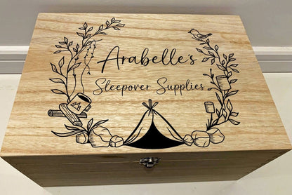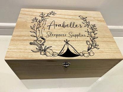 Caja de memoria de recuerdo de madera grabada personalizada grande para fiesta de pijamas