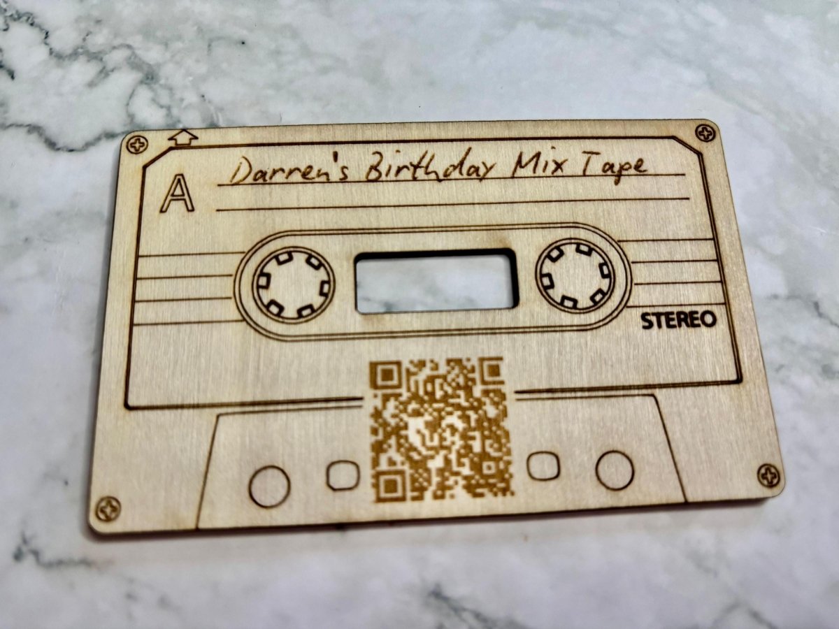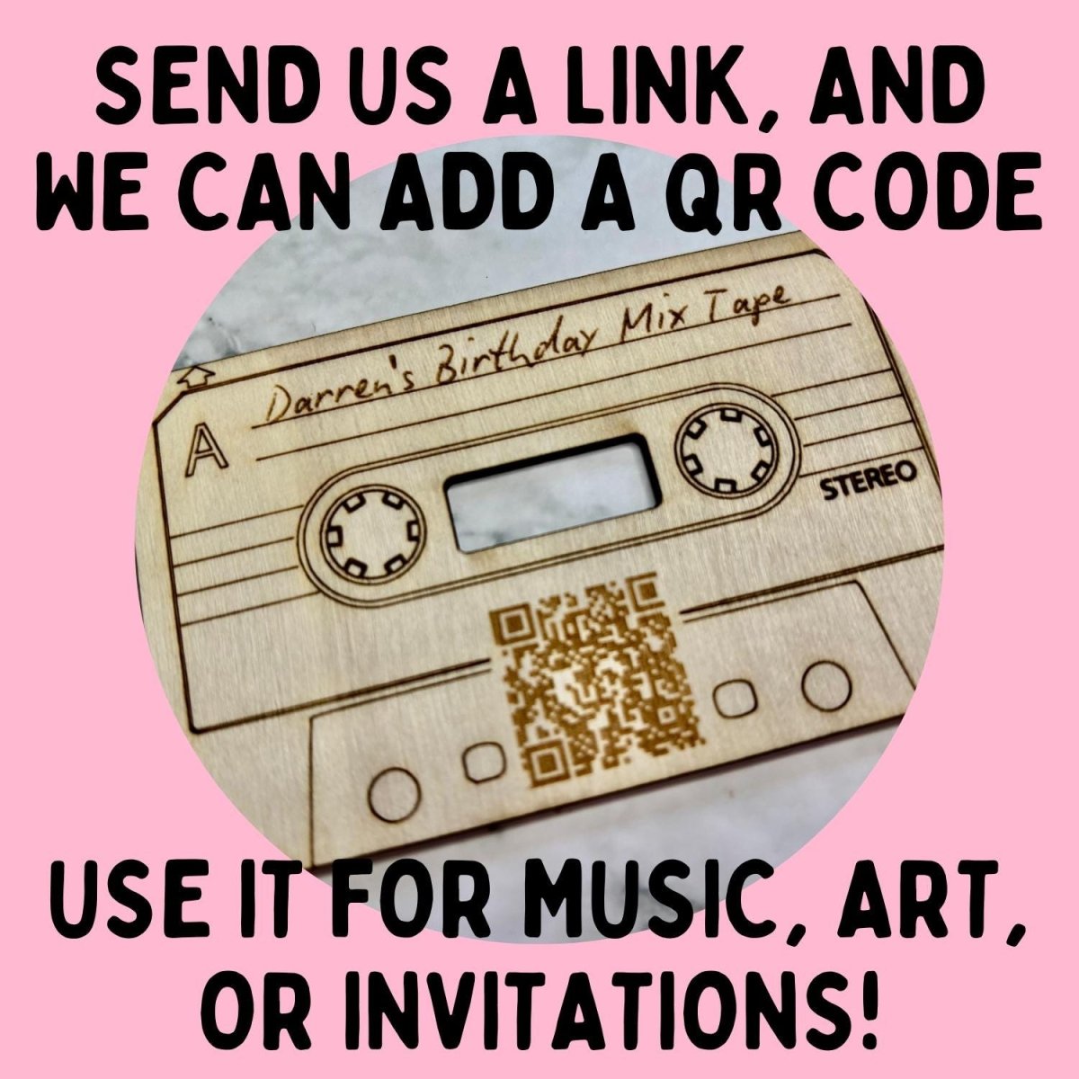 Keep your gift cards looking retro and stylish with our Personalised Engraved Mix Tape Gift Card Holder! Made from high-quality wood, this holder features a cute cassette tape design for music lovers. Add a personalised touch with a QR code that plays their favourite tune, shows their favourite art, or even links to a wedding invite. Perfect for Valentine's Day, birthdays, or any occasion.