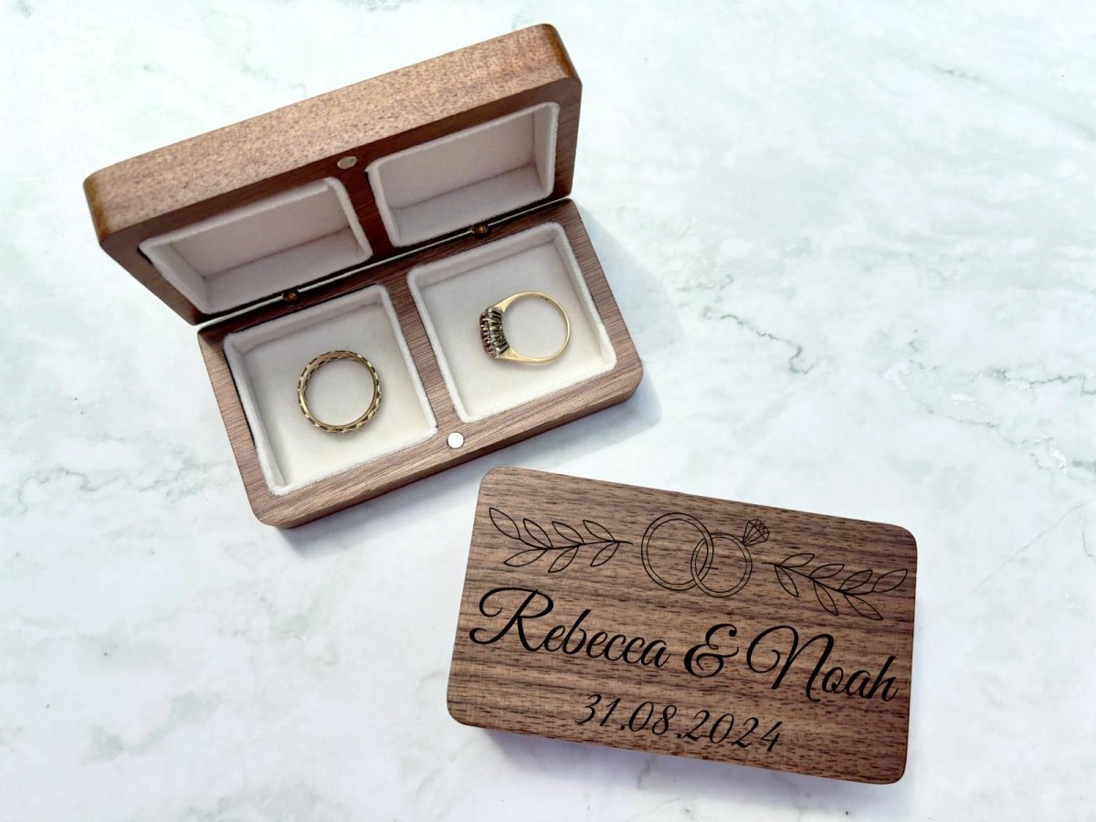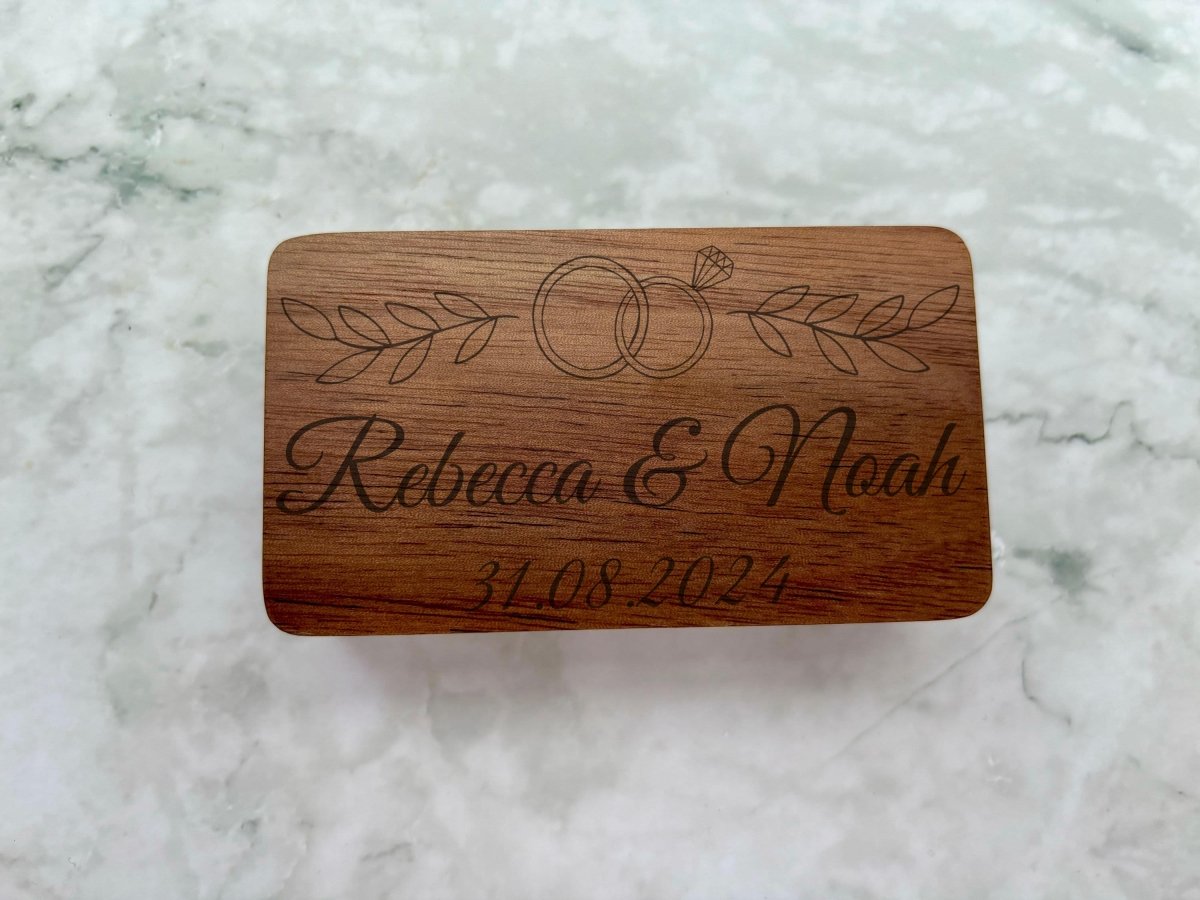 Personalised Wooden Ring Box, Engraved Ring Box For Anniversary Gifts, Custom Wooden Ring Box For Wedding Gifts