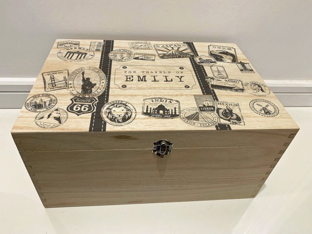 Each design is carefully engraved onto premium wood, ensuring a finish that’s both stunning and durable. Our keepsake boxes are made from 100% paulownia wood, offering a lightweight yet sturdy finish, and can only be found through us. Whether it’s a keepsake to treasure forever or a party piece to make an occasion extra special, our creations are made to impress.