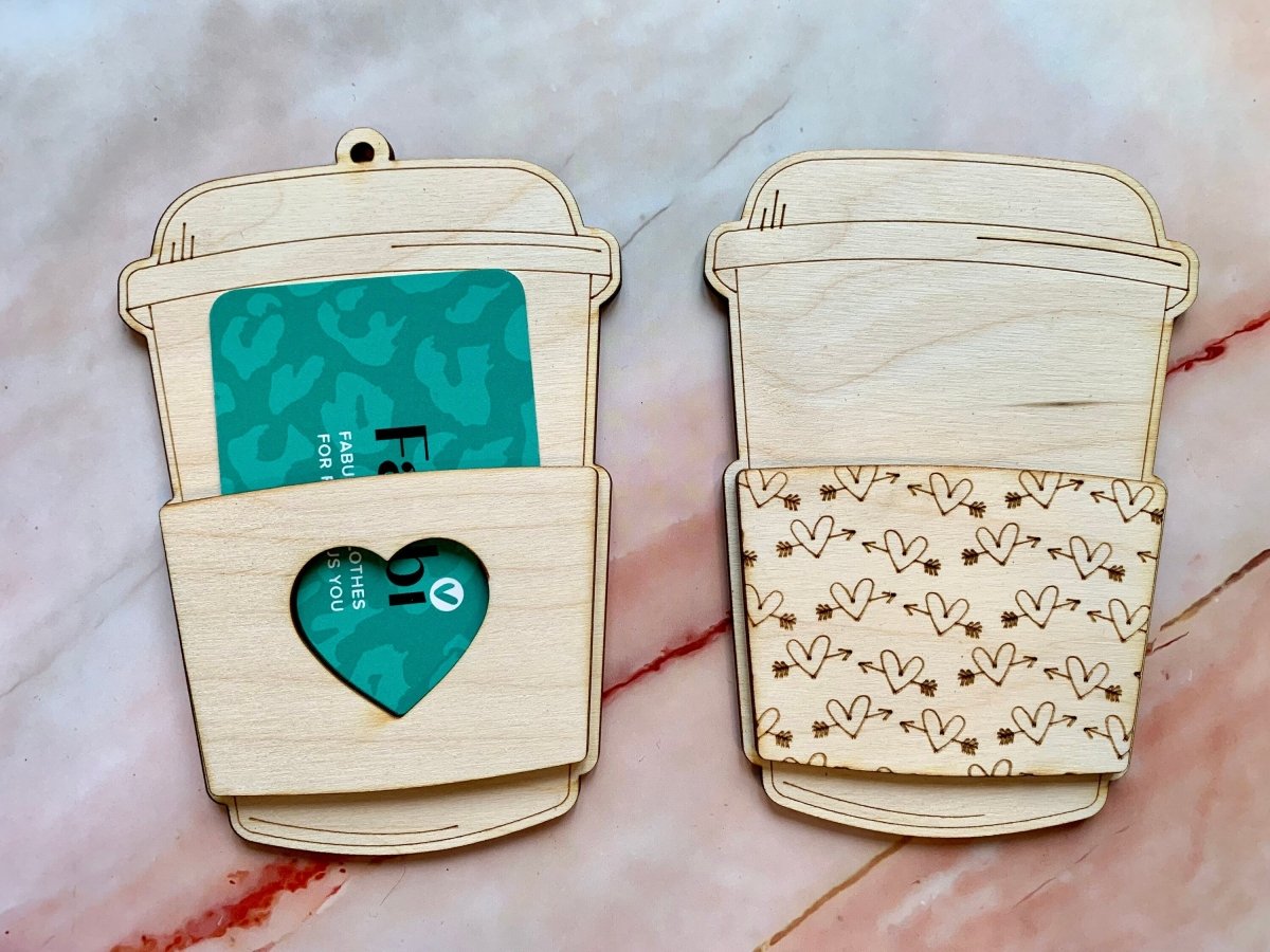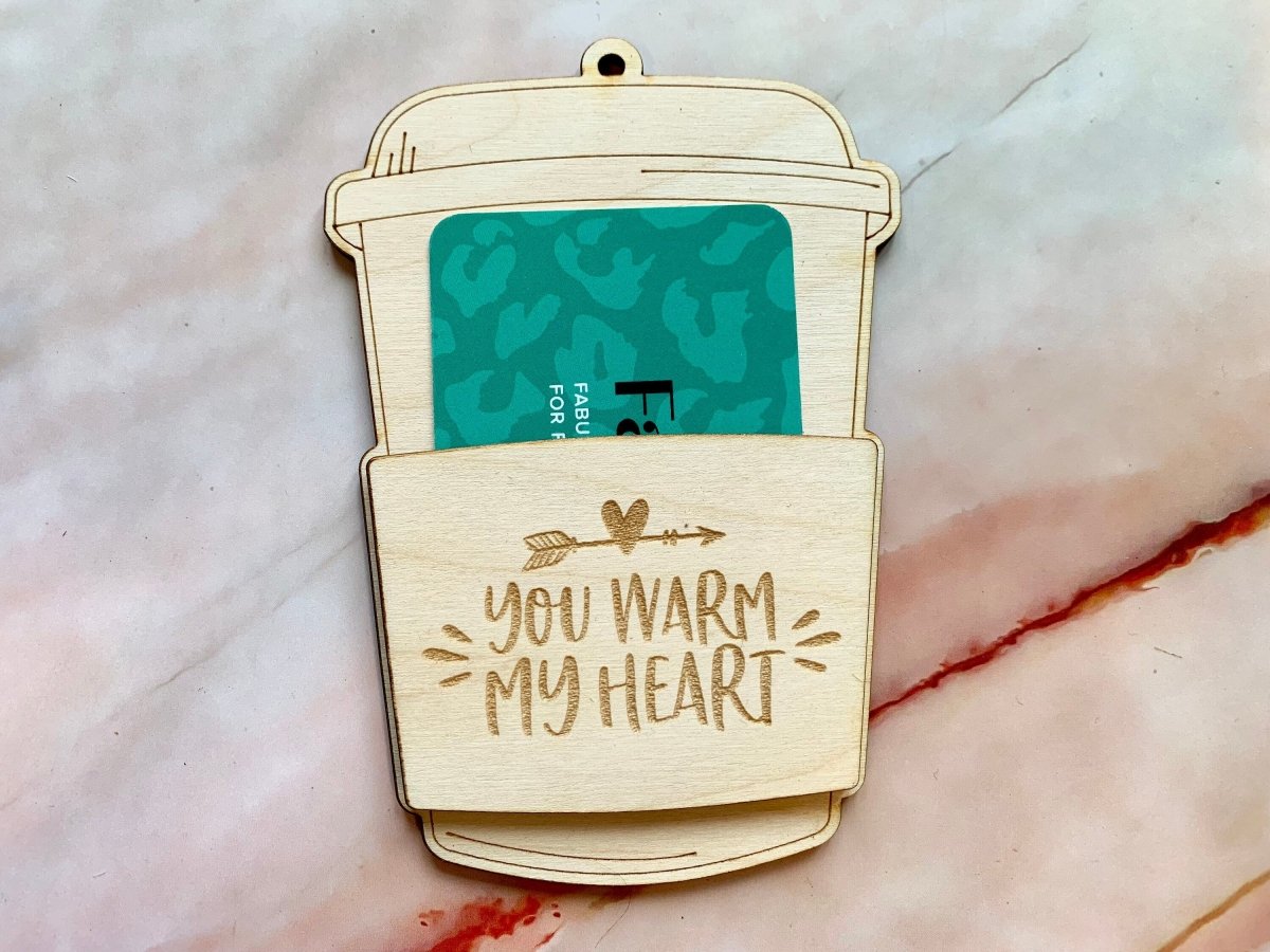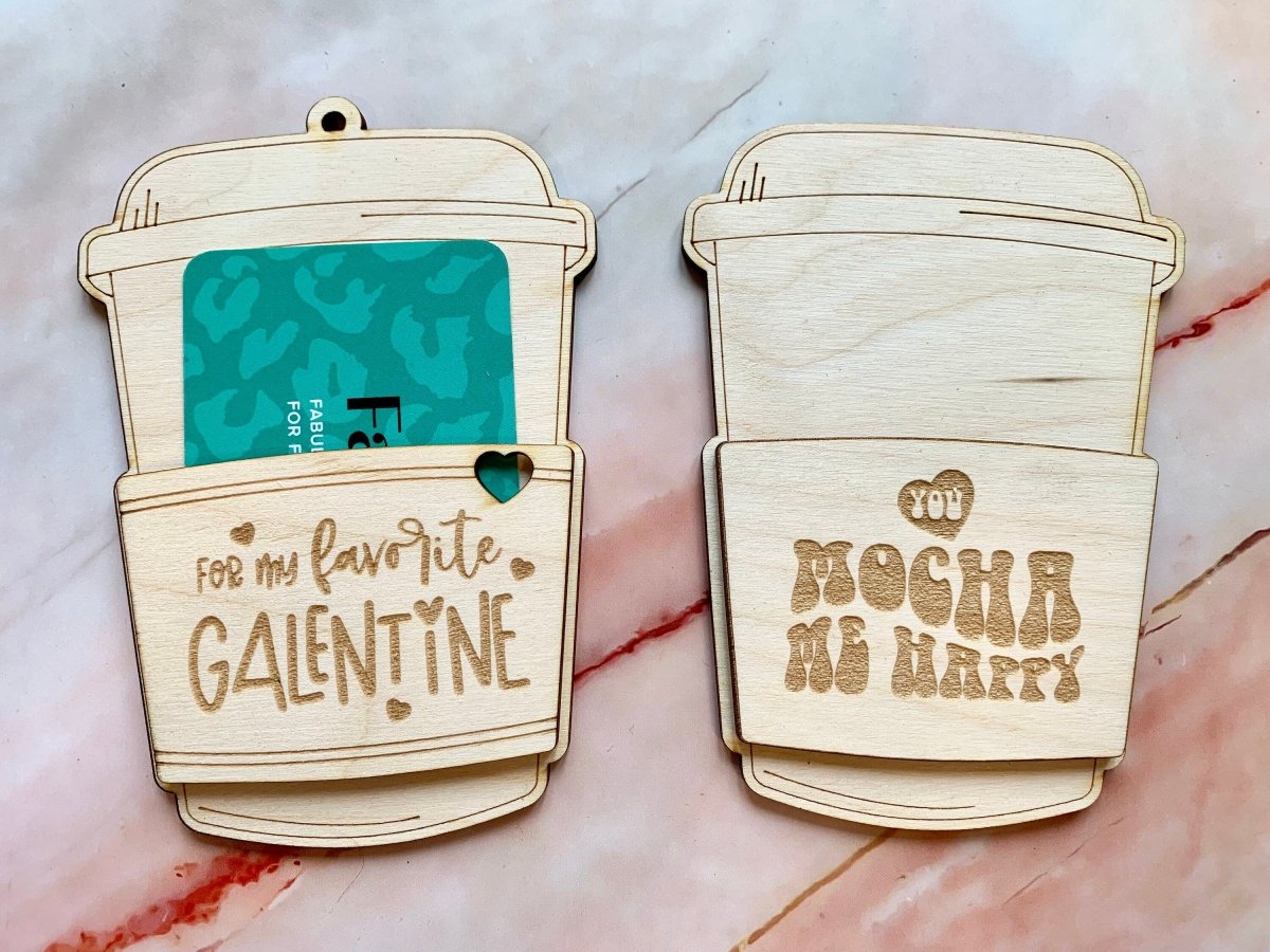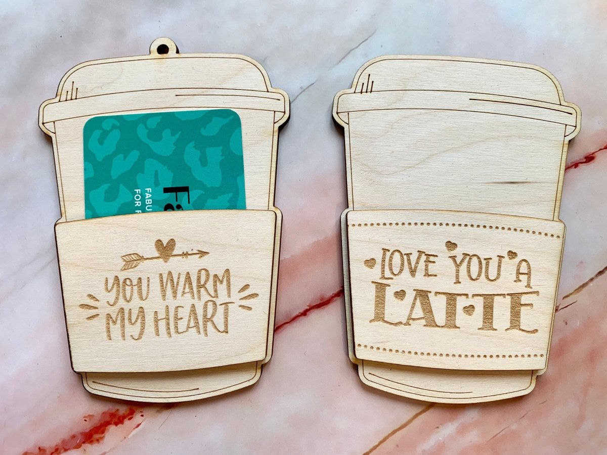 Titular de la tarjeta de regalo de San Valentín grabado personalizado, titular de la tarjeta de regalo de café con corazones y frases de café