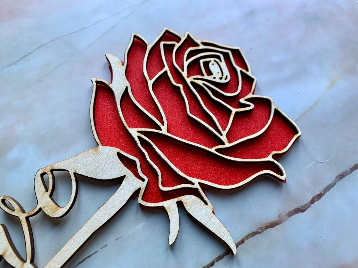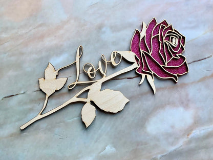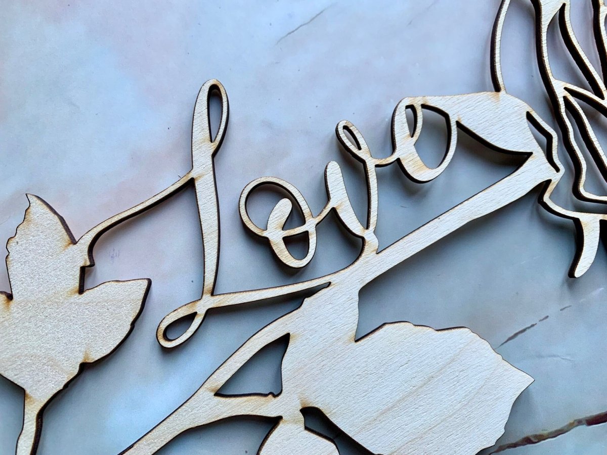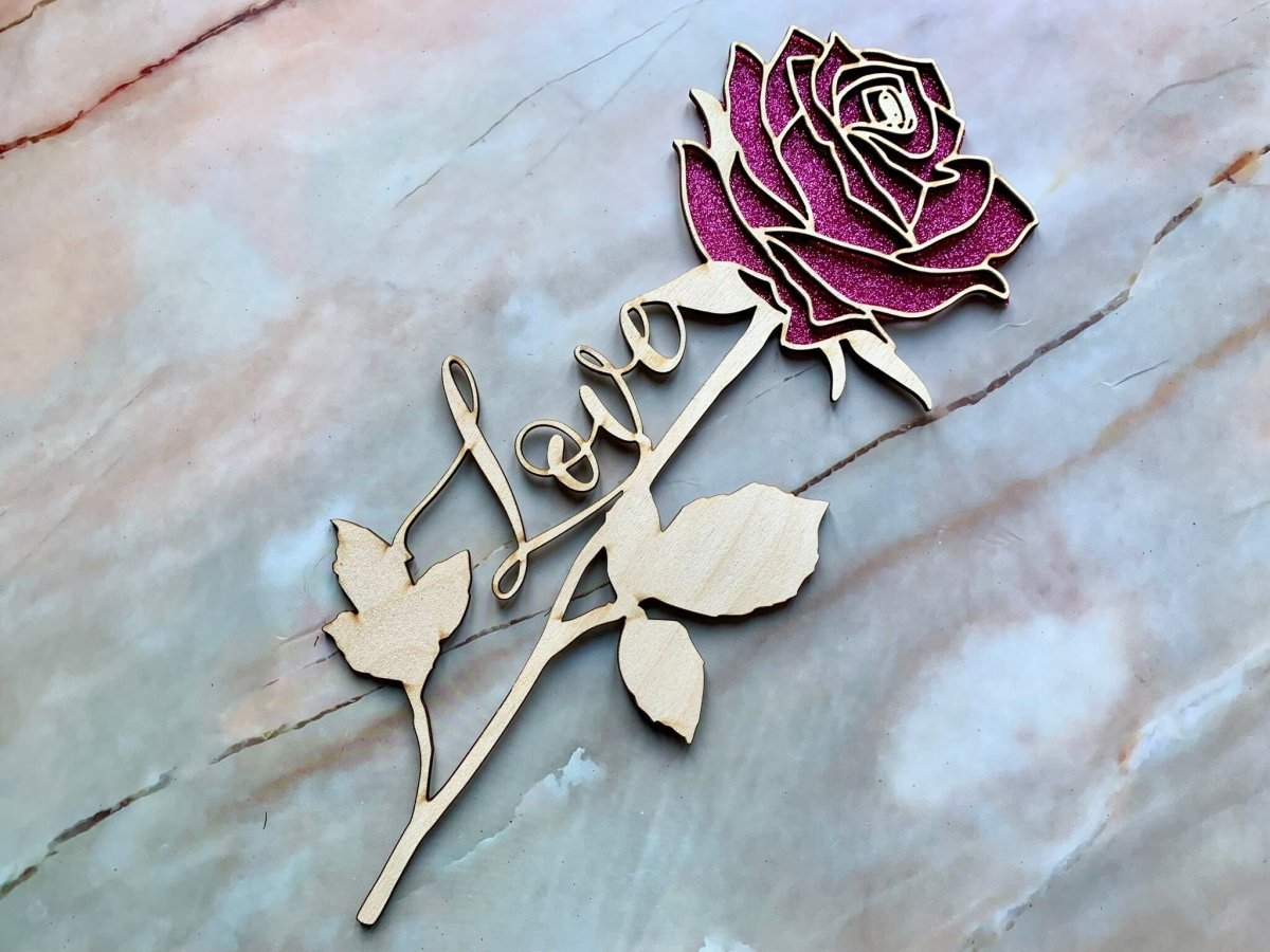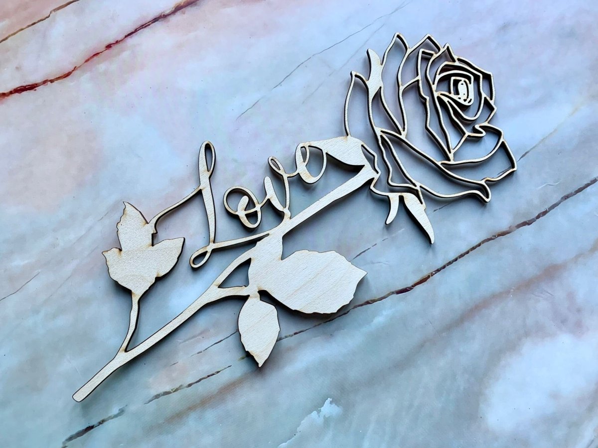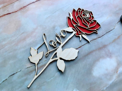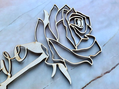 Esta hermosa rosa de madera, grabada con láser profesionalmente, es la manera perfecta de mostrarle a alguien cuánto lo amas. Grabado para incluir la palabra "Amor", también se puede personalizar y reemplazar con otra palabra o un nombre.
