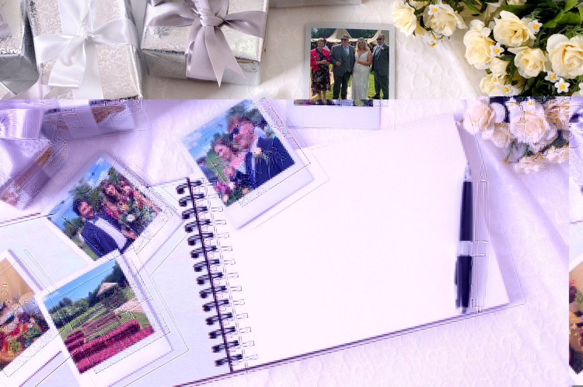 Cada libro de visitas es A4 horizontal y cuenta con 35 páginas en blanco para que los invitados escriban o agreguen fotos.