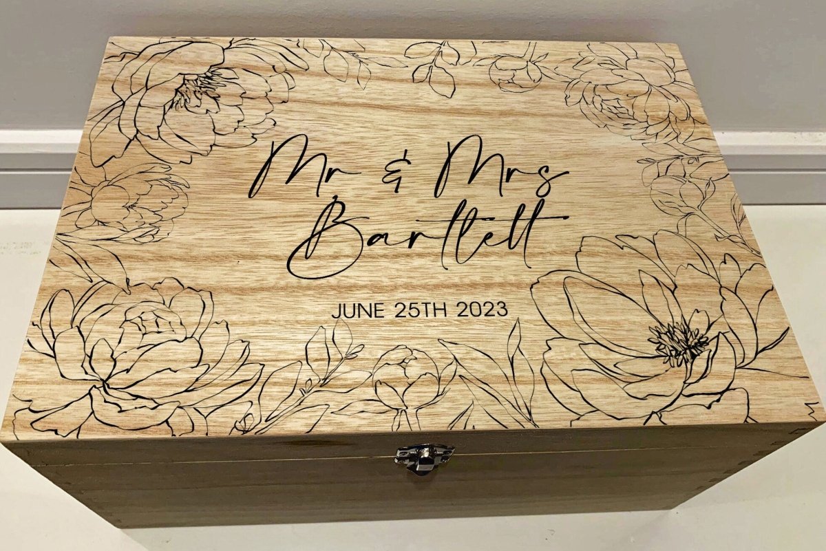 Each design is carefully engraved onto premium wood, ensuring a finish that’s both stunning and durable. Our keepsake boxes are made from 100% paulownia wood, offering a lightweight yet sturdy finish, and can only be found through us. Whether it’s a keepsake to treasure forever or a party piece to make an occasion extra special, our creations are made to impress.