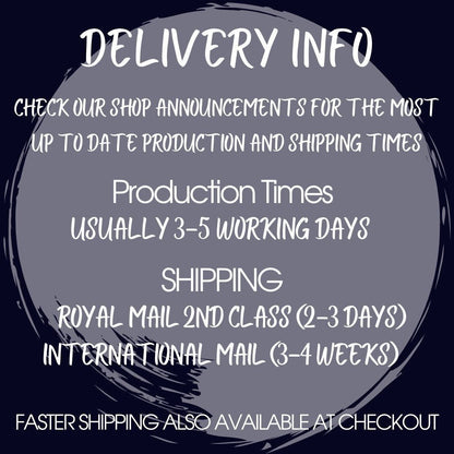 Los artículos se envían a través de Royal Mail 2nd Class como estándar, lo que demora aprox. 3-4 días hábiles en llegar.