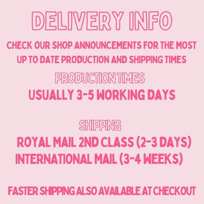 Los artículos se envían a través de Royal Mail 2nd Class como estándar, lo que demora aprox. 3-4 días hábiles en llegar.