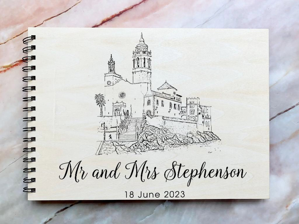 Nuestros libros de visitas personalizados grabados son una manera hermosa y significativa de guardar los recuerdos de su boda. Elaborado con materiales de alta calidad, presenta una hermosa imagen detallada del lugar de su boda. Mantenga sus recuerdos especiales seguros e intactos durante muchos años.