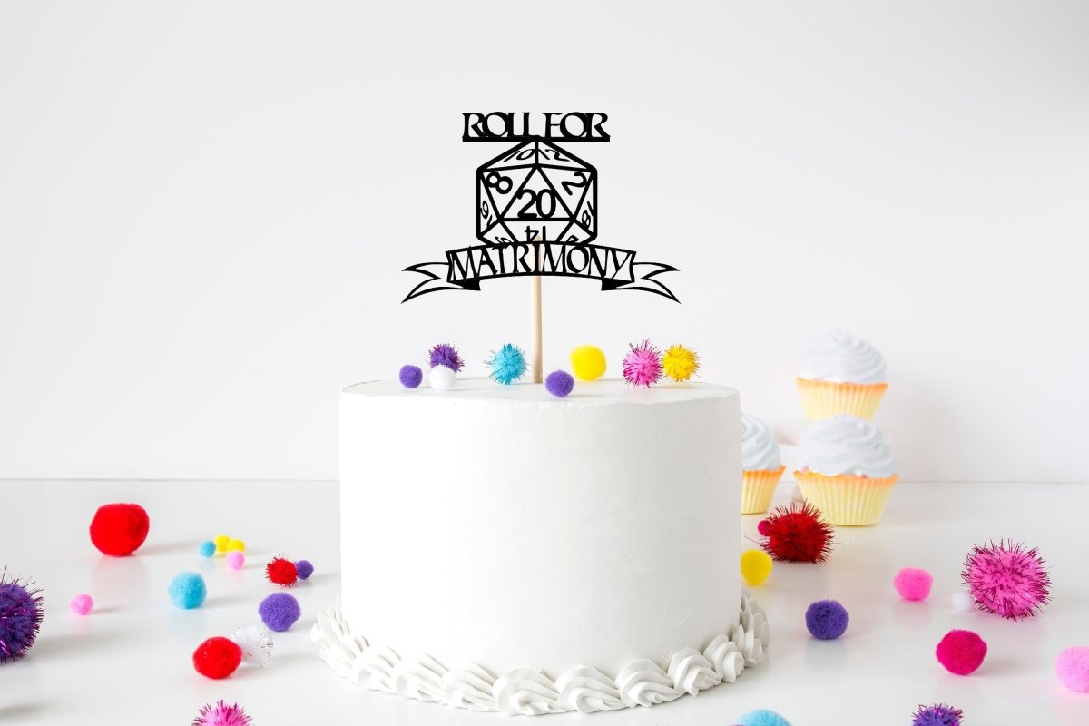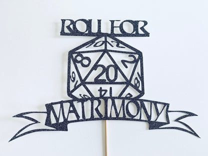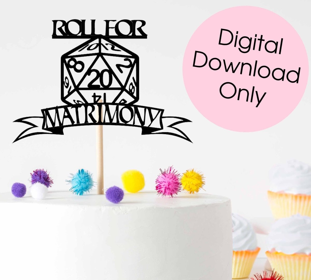 Elevate your wedding cake topper game with our Digital Roll For Matrimony DnD topper! Download this unique design and bring a touch of tabletop adventure to your special day. Roll for matrimony and land a critical hit on your guests' hearts with this one-of-a-kind addition.