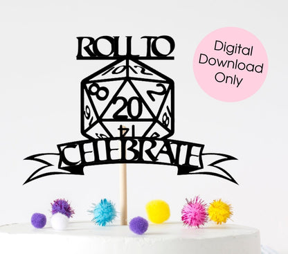 Roll To Celebrate D&D birthday cake topper digital download for Cricut or Silhouette, png, svg, jpeg, pdf cut files