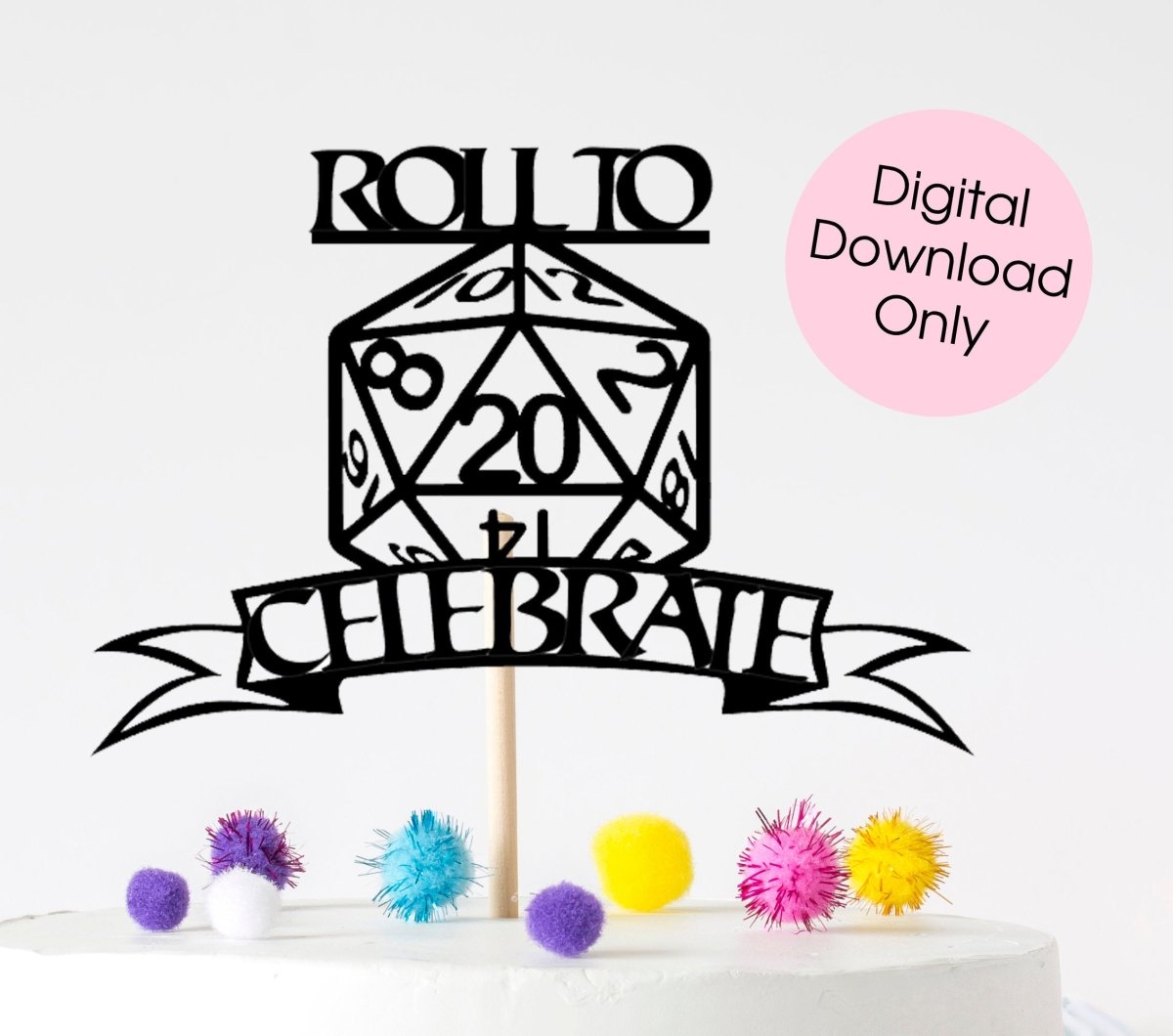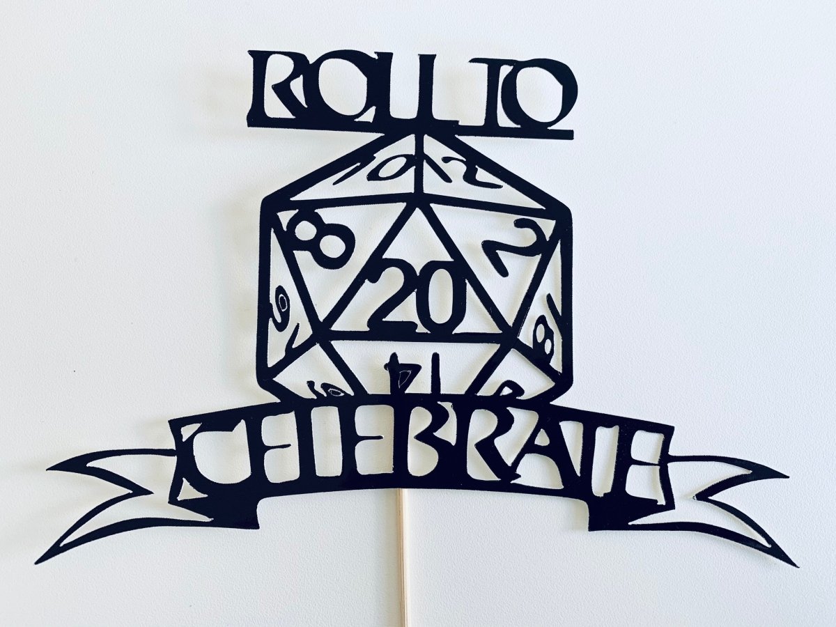 Elevate any DnD themed birthday celebration with our Digital Roll To Celebrate DnD cake topper. Easily downloadable and customisable, this topper is the perfect addition to any celebration. Roll your way to a critical hit of fun and level up your party game!