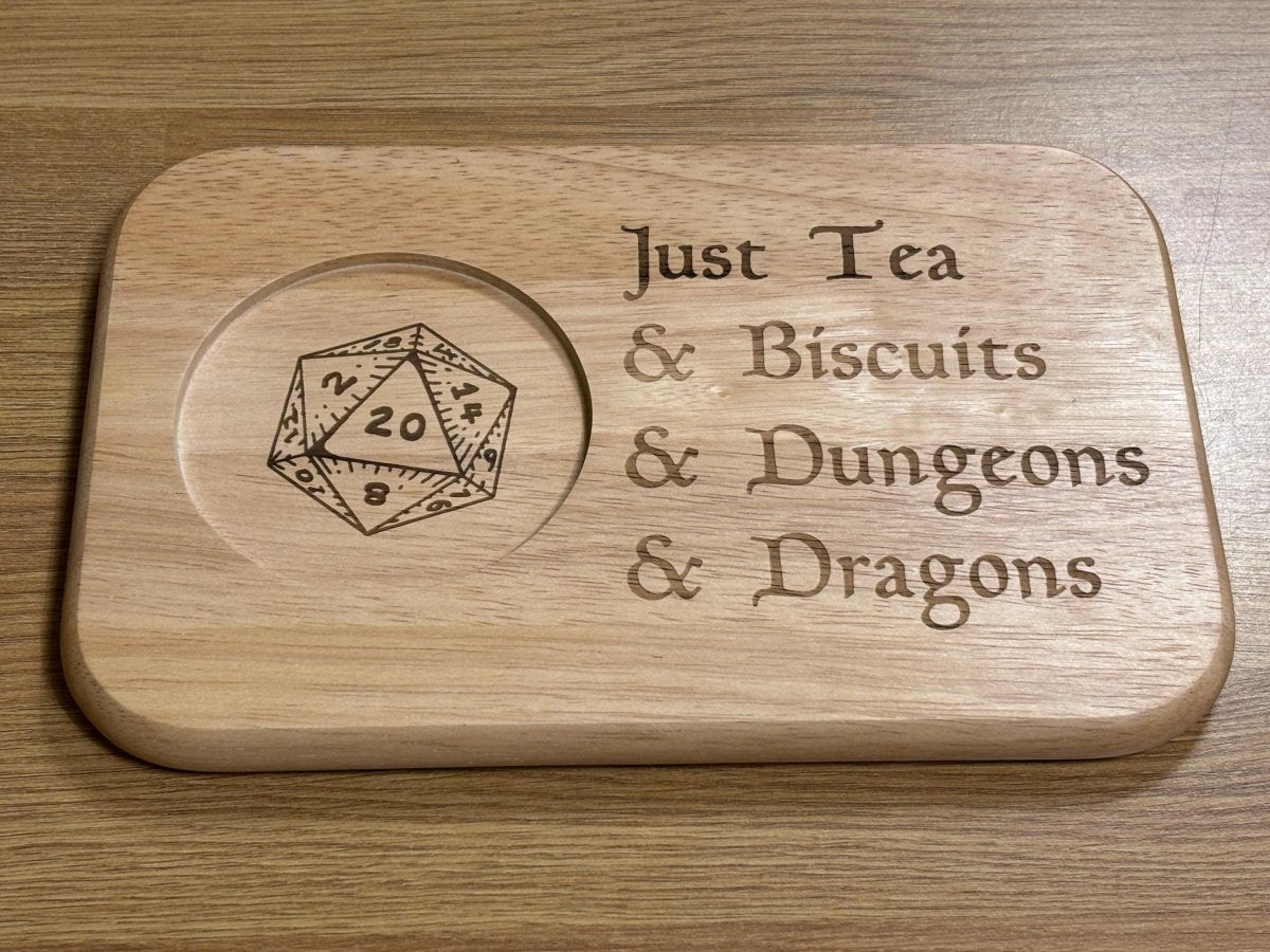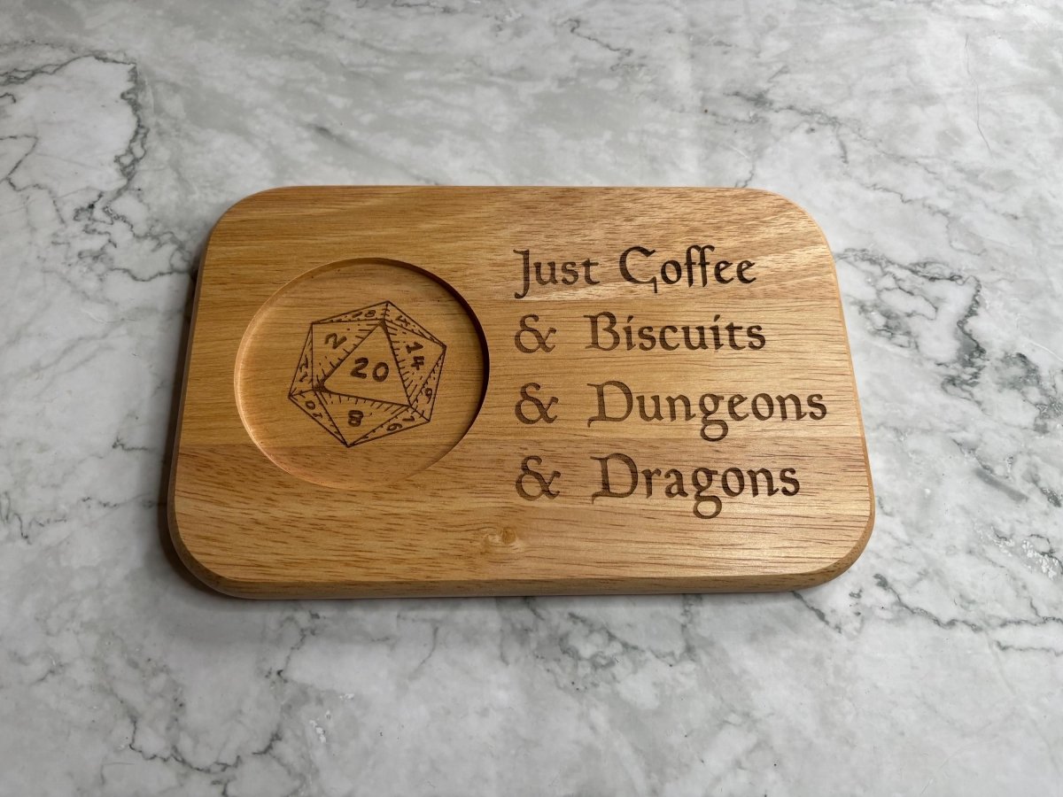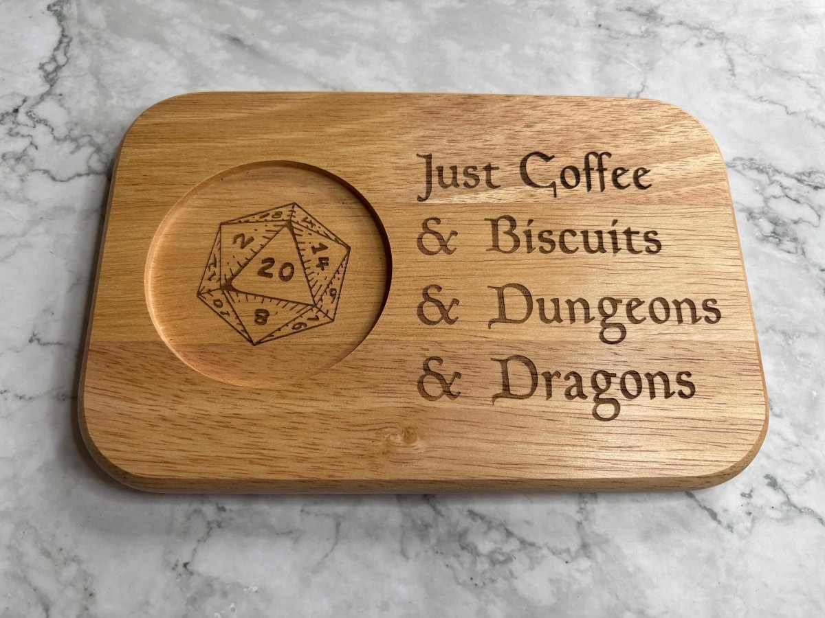 Personalised Engraved DnD Drink and Biscuit stand, Tea cup stand, Coffee Mug stand, Snack Tray