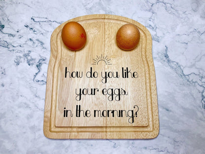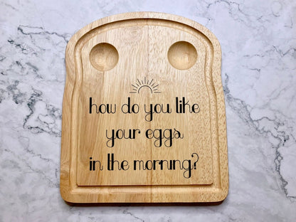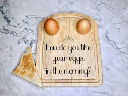 Revolutionise your morning breakfast routine with a Personalised How do you like your eggs in the morning? Wooden Breakfast Board, the perfect way to enjoy classic egg and toast combinations. Professionally engraved, this board will make a great addition to any breakfast table.
