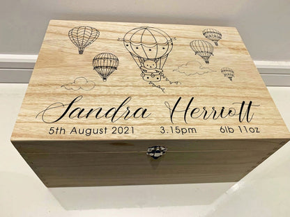 Personalised Baby Keepsake Box with Hot Air Balloons