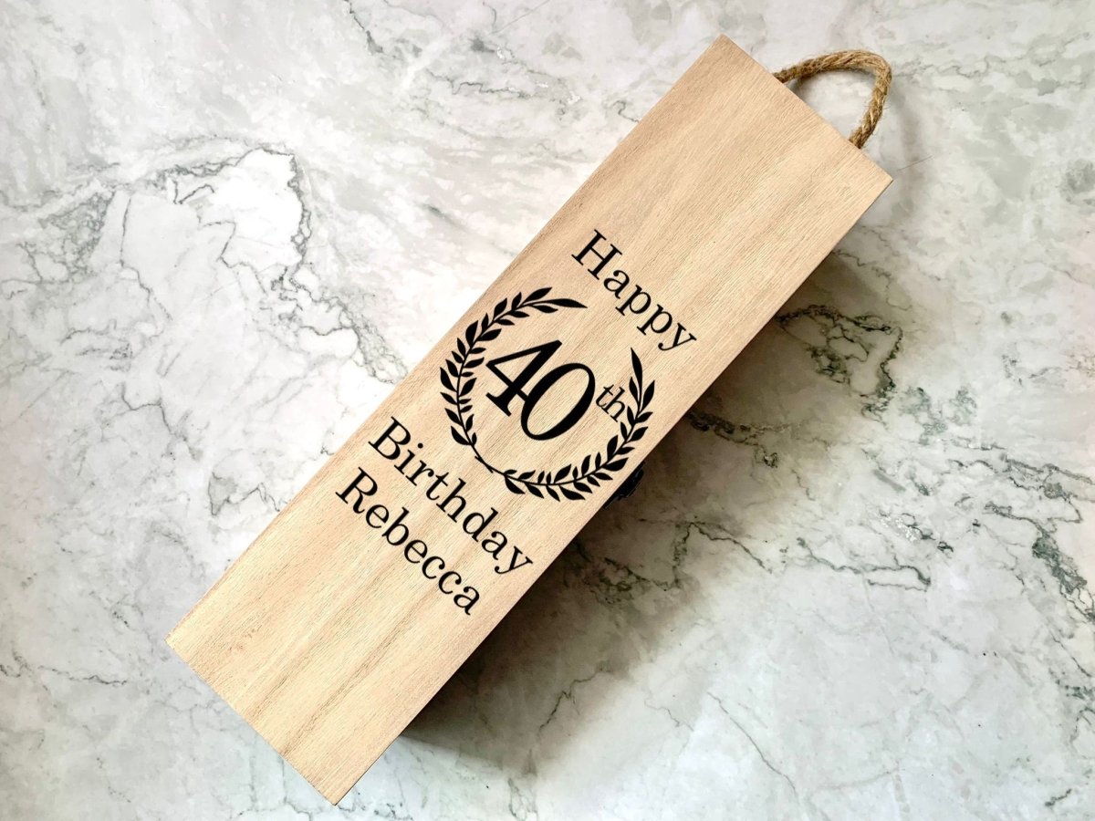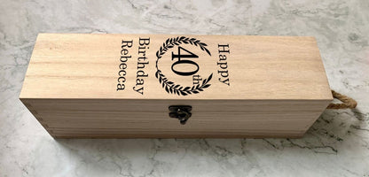 Personalised Happy Birthday Engraved Wooden Wine Bottle Gift Box