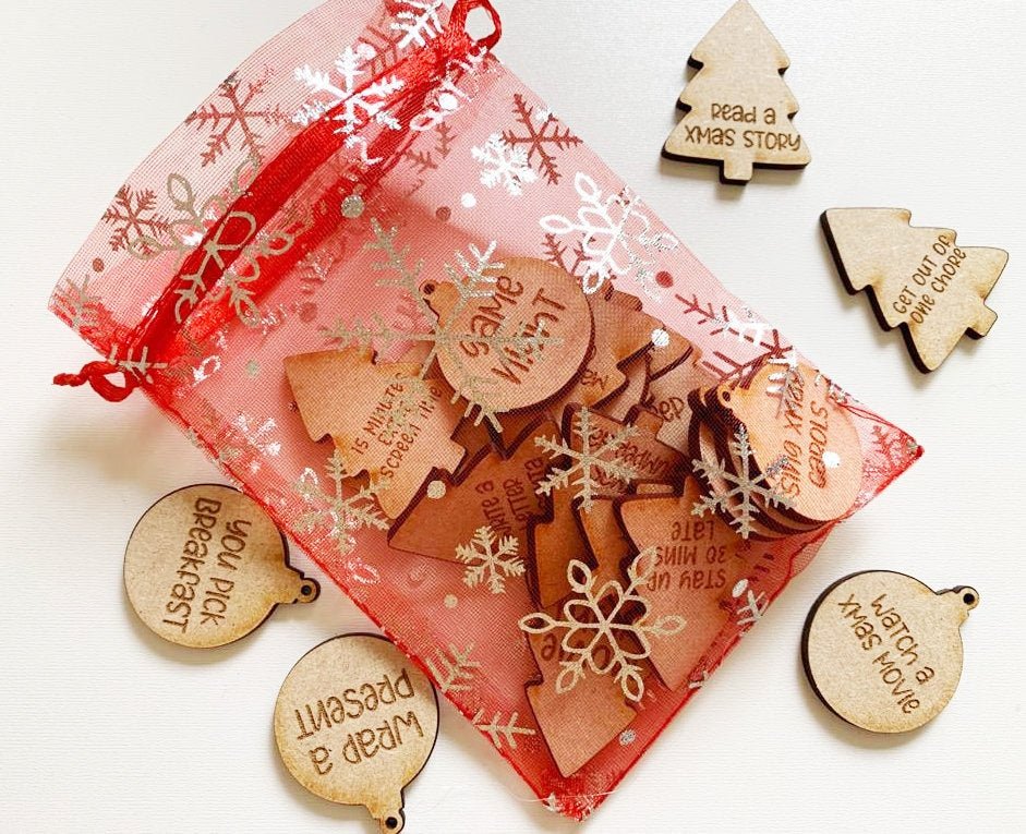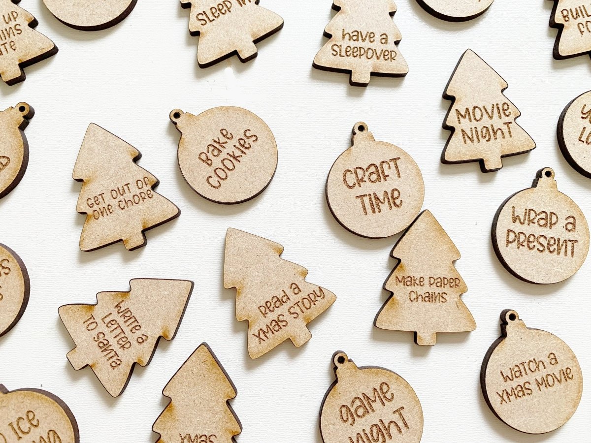 Personalised Engraved Wooden Christmas Advent Tokens, Chocolate advent alternative, Advent inserts, Engraved tokens, Christmas advent