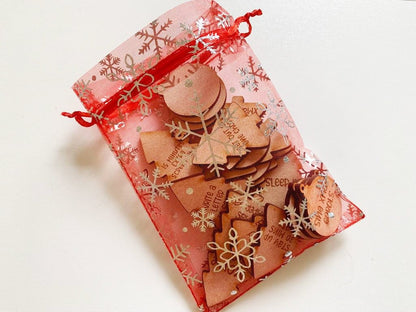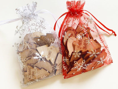 Tokens are available in snowmen, xmas trees of bauble shapes, or an assortment of all three, and come in a Christmassy gift bag so you never lose them.