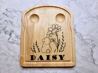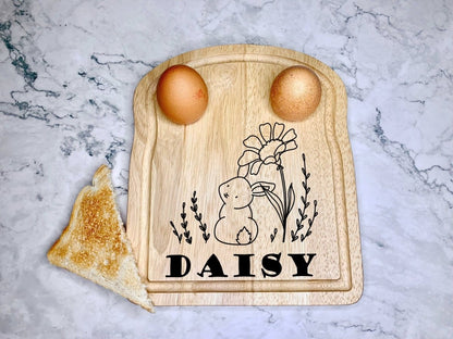 Personalised Dippy Eggs Easter Bunny Wooden Egg and Toast Board