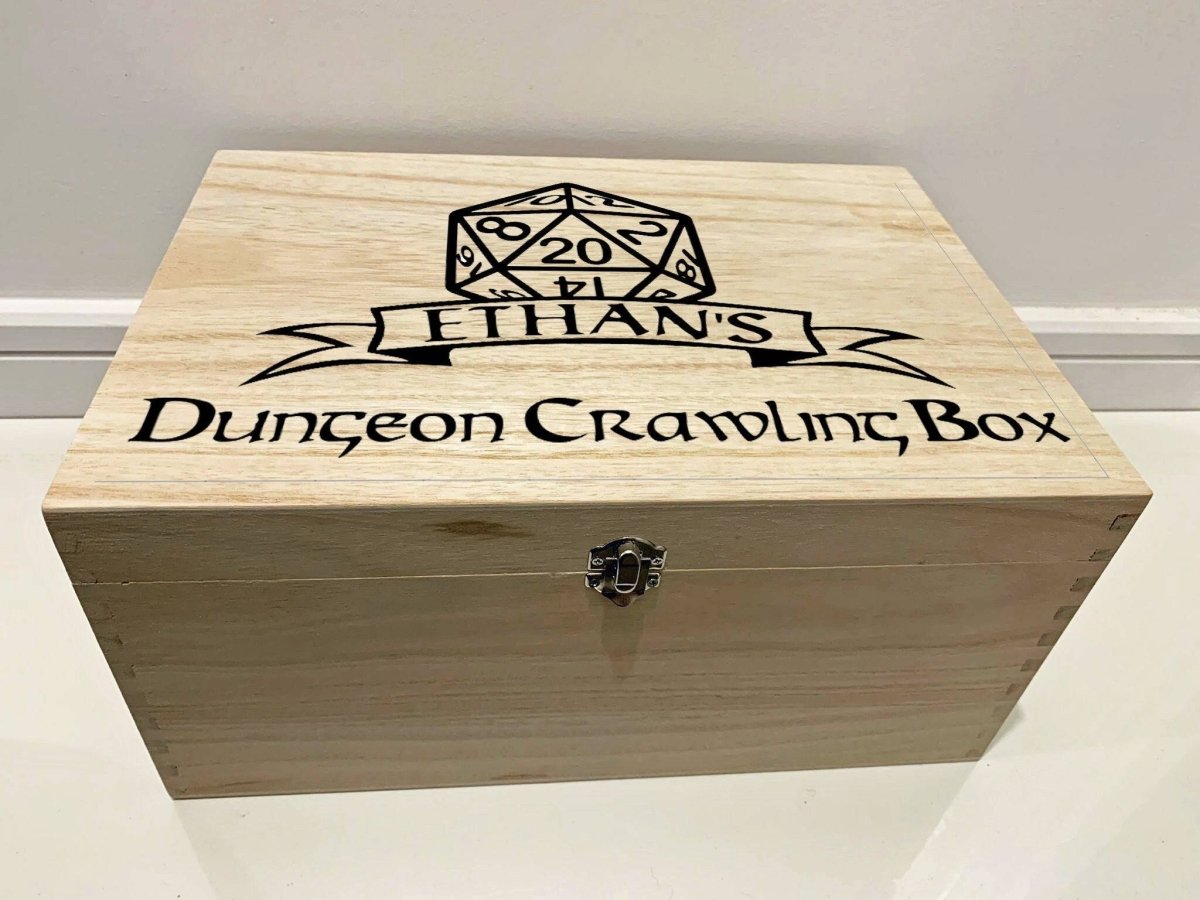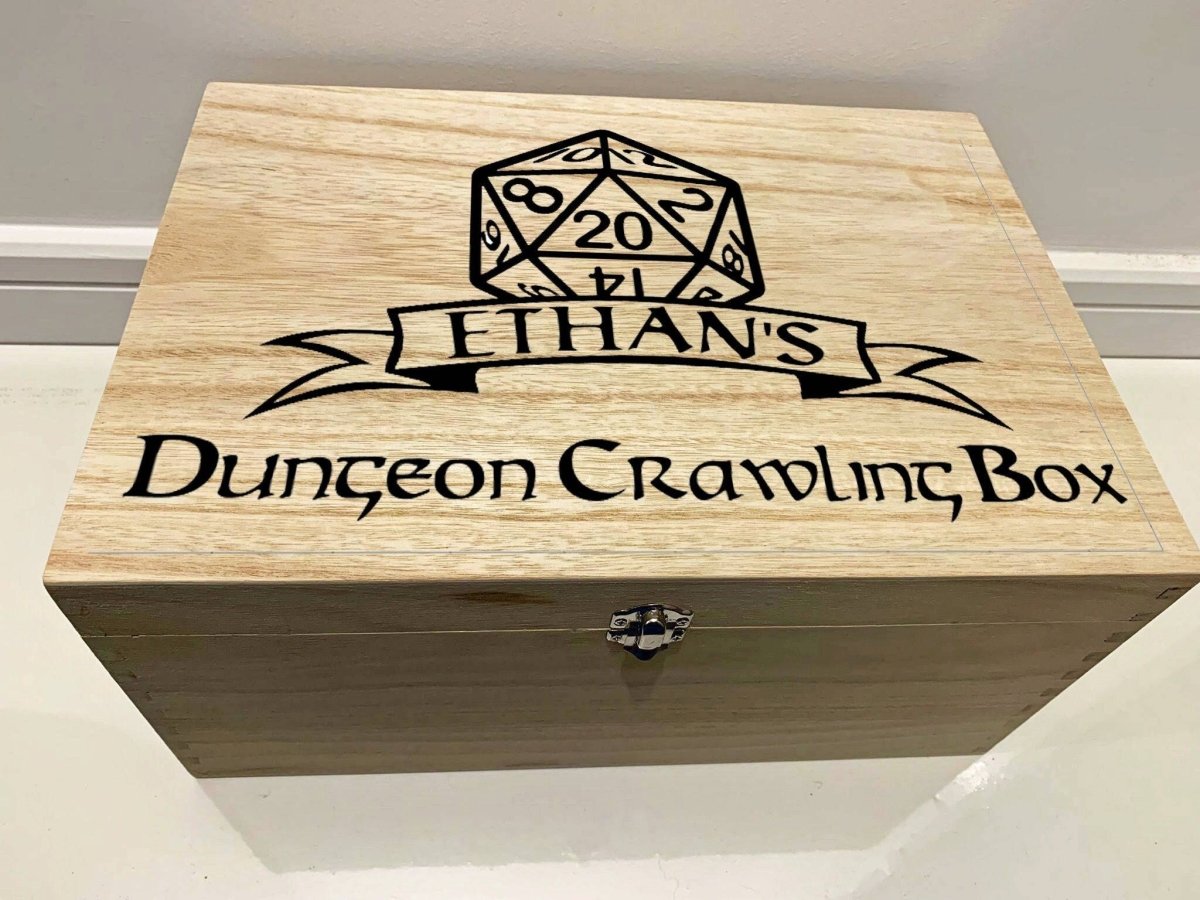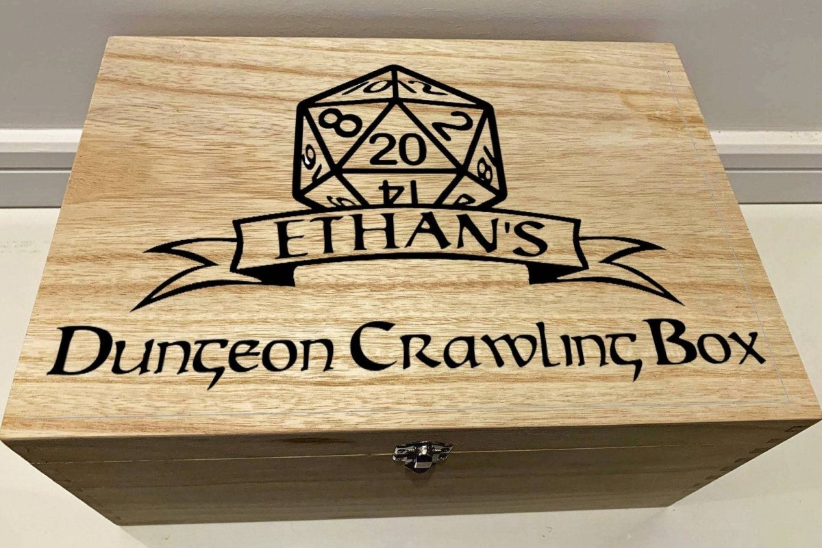 Introducing our personalised wooden DnD box, complete with engraved name and critical hit dice. Guaranteed to make your gaming experience truly unique and exciting, with a perfect place to store dice, character sheets or campaign notes.