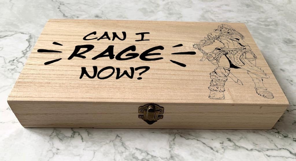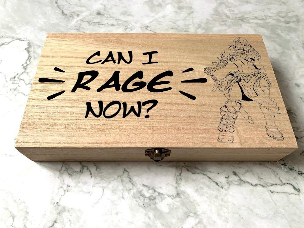 Personalised Engraved DnD Dungeons and Dragons Bard Barbarian Box, Can i Rage Now?, Barbarian Rage