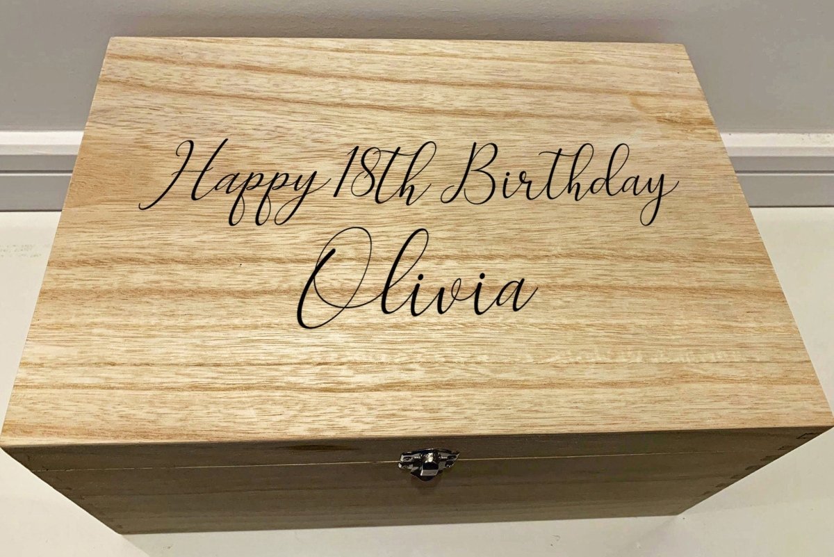 Celebrate a special birthday with our Personalised Happy Birthday Keepsake Box. Made of high-quality wood and skilfully engraved, this box is the perfect gift for storing cherished memories. Personalise it with the recipient's name for a unique and thoughtful present that will be treasured for years to come.