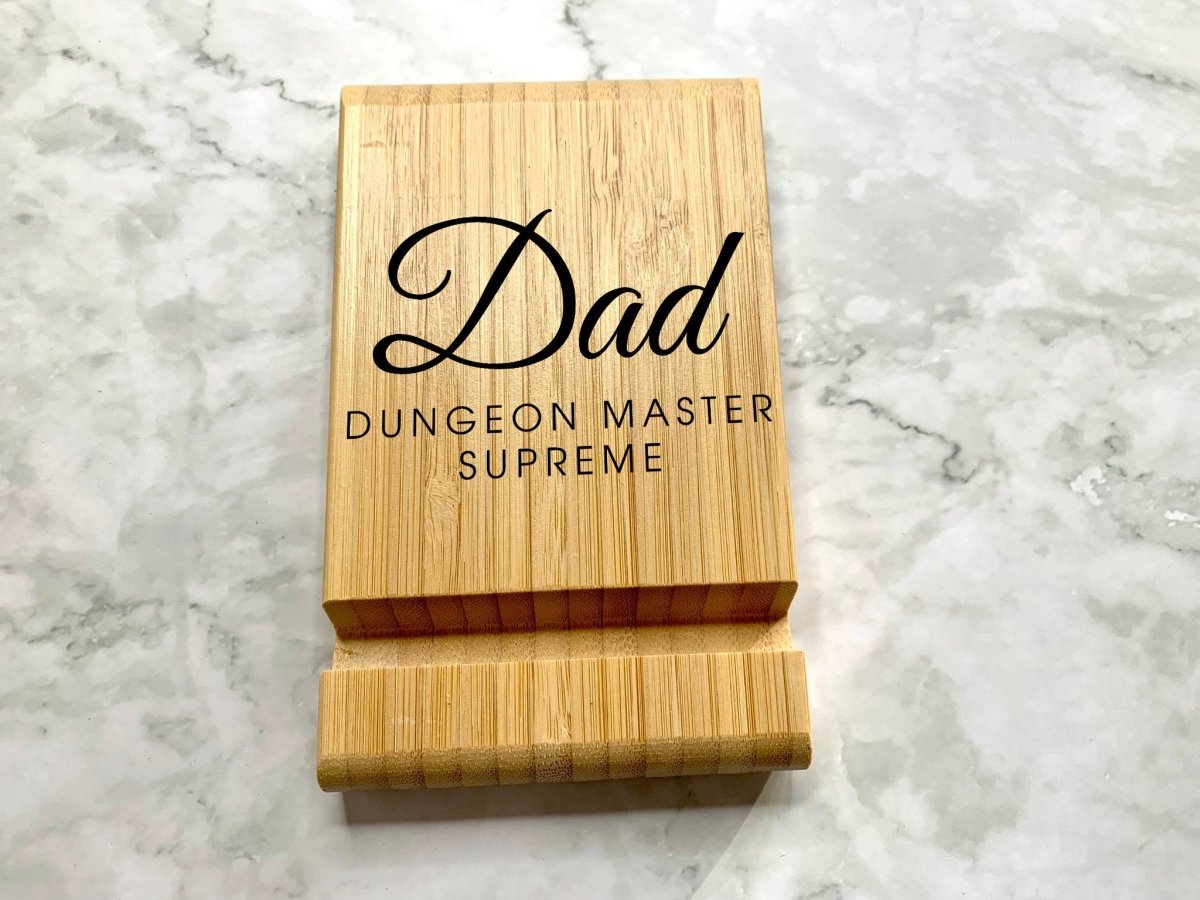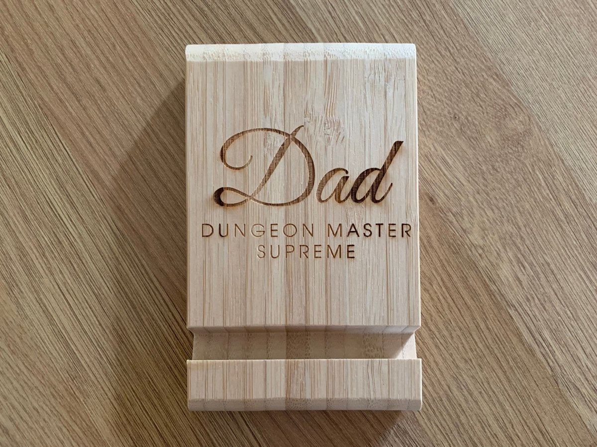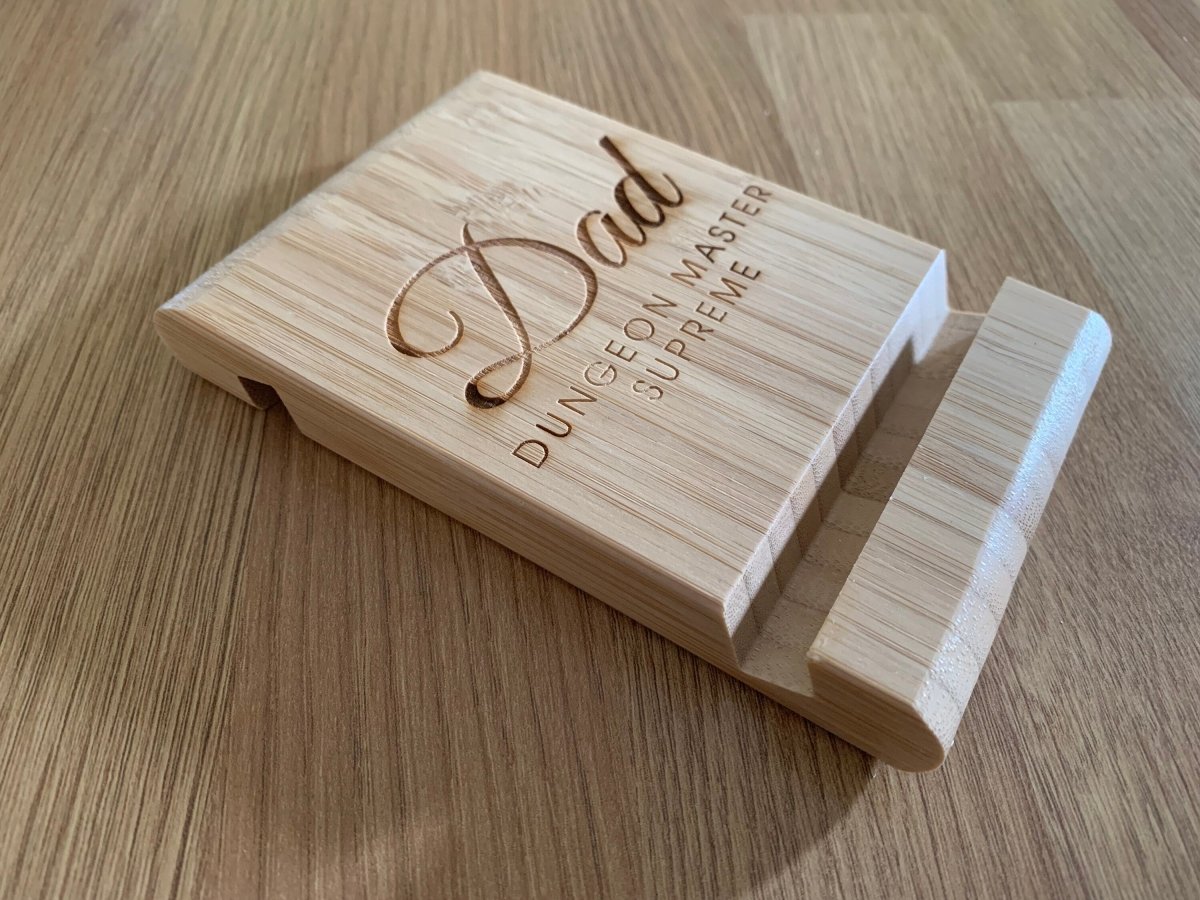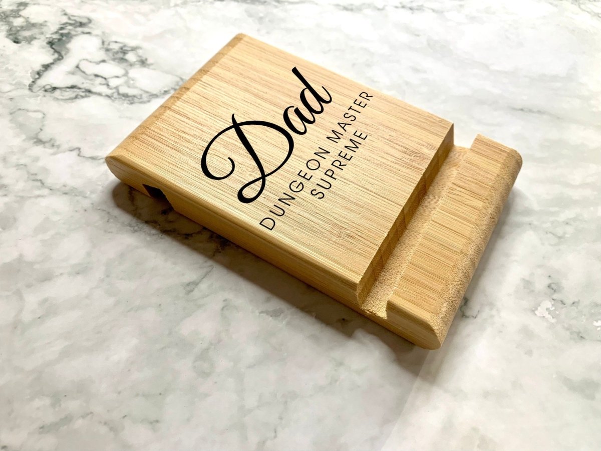 Personalised Engraved Bamboo Wooden Phone Holder, iPad Holder, Tablet Holder, iPad Stand, Tablet Stand, Phone Stand for DnD