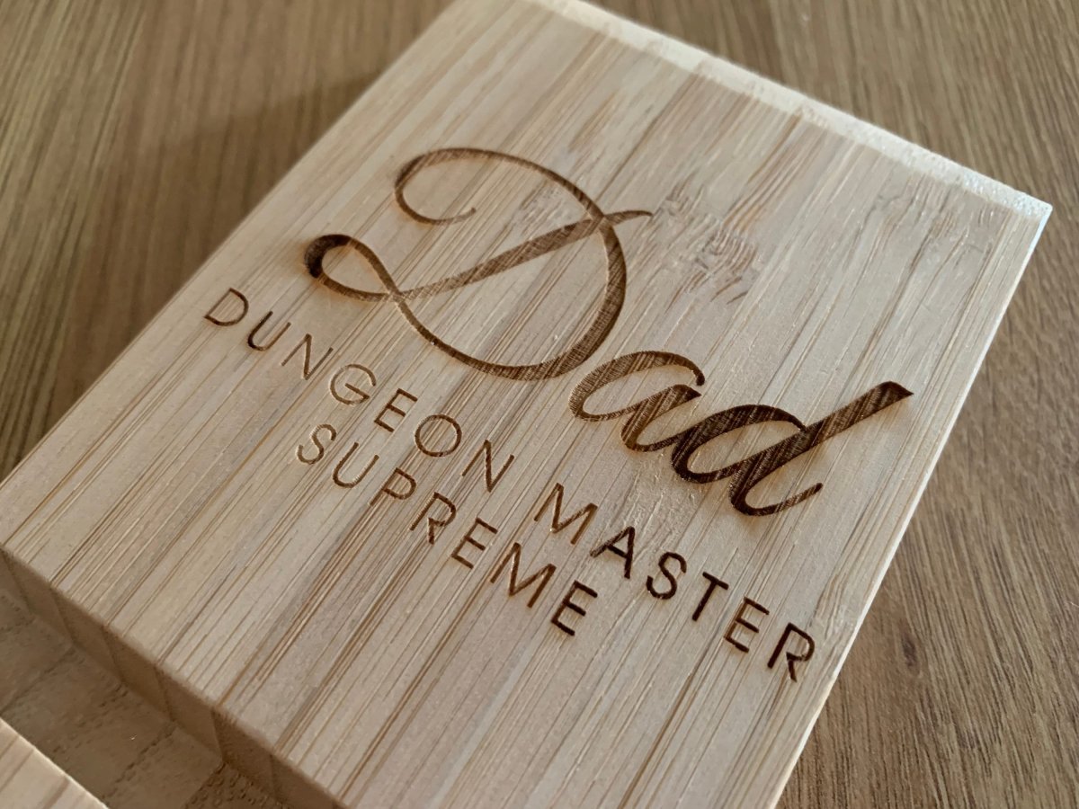 Introducing the Personalised Name Phone or Tablet Holder for DnD! This unique and stylish holder is made of bamboo and can be personalised with your name. Perfect for Dungeon Master Supreme's and DnD enthusiasts, this holder is perfect for keeping your phone or tablet safe and secure while you navigate your next adventure.