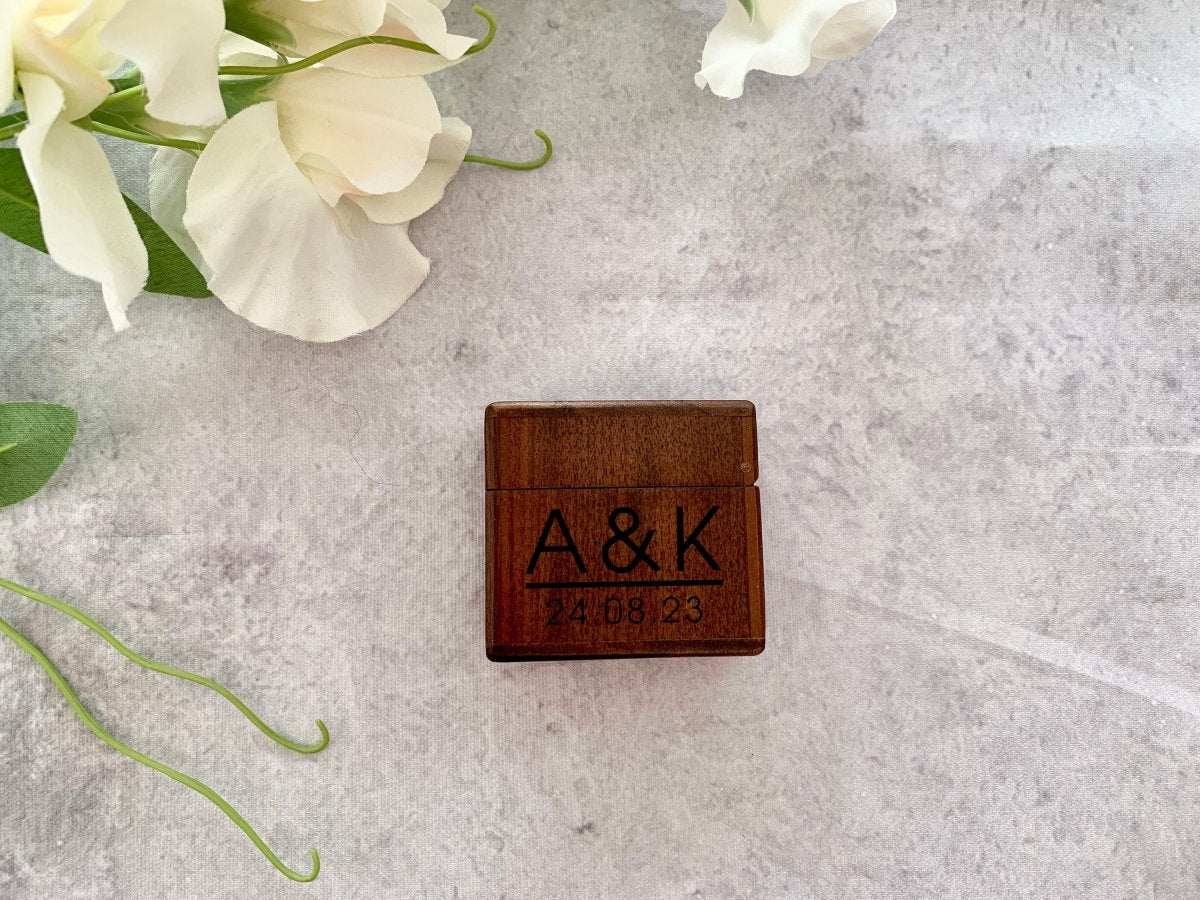 Personalised Square Engraved Wooden Wedding Ring Box, Engagement Ring Box with Initials, Anniversary Gift