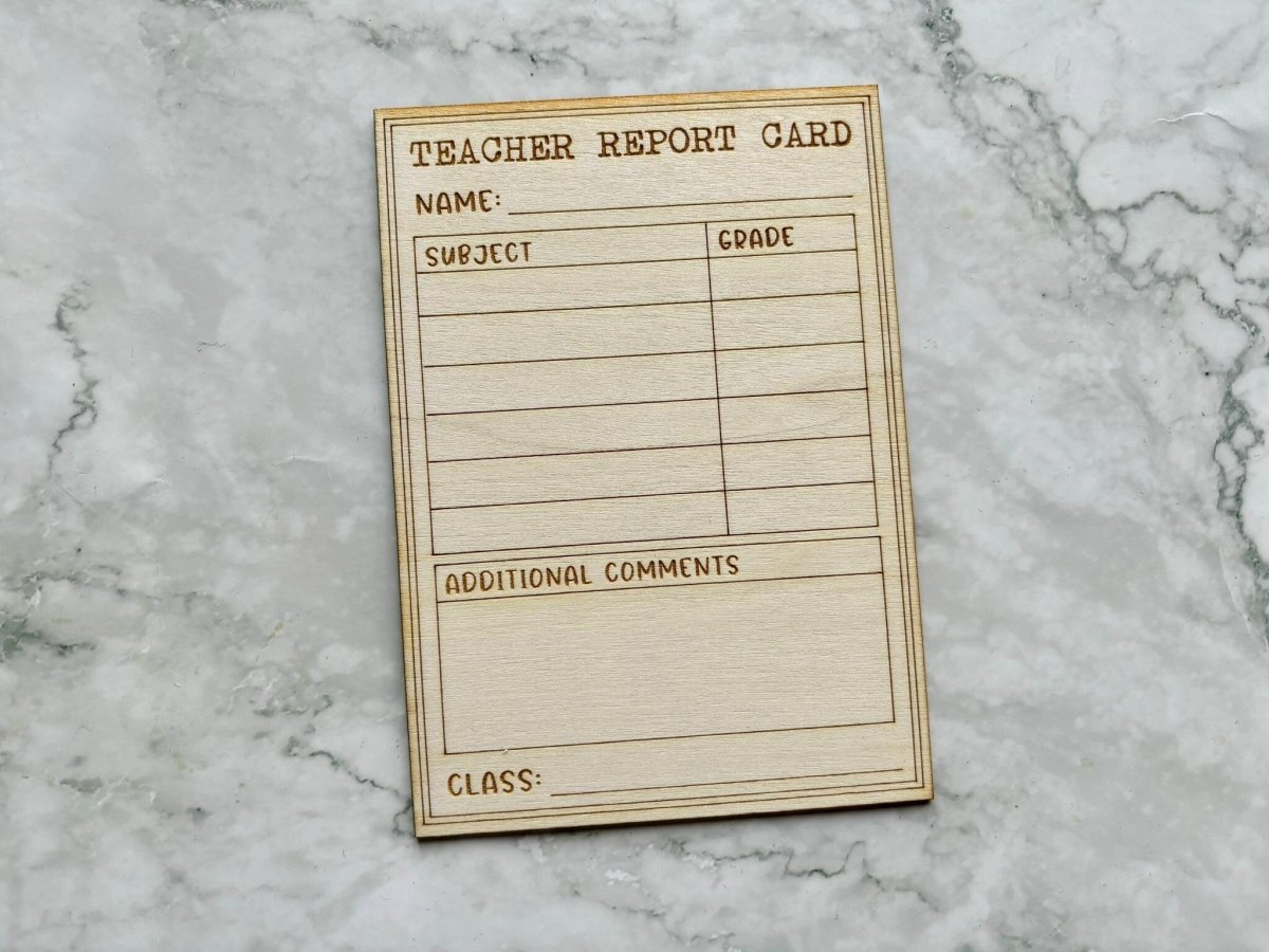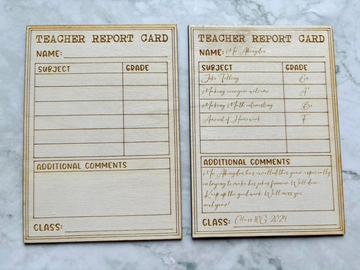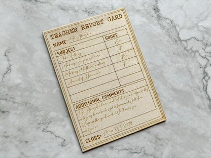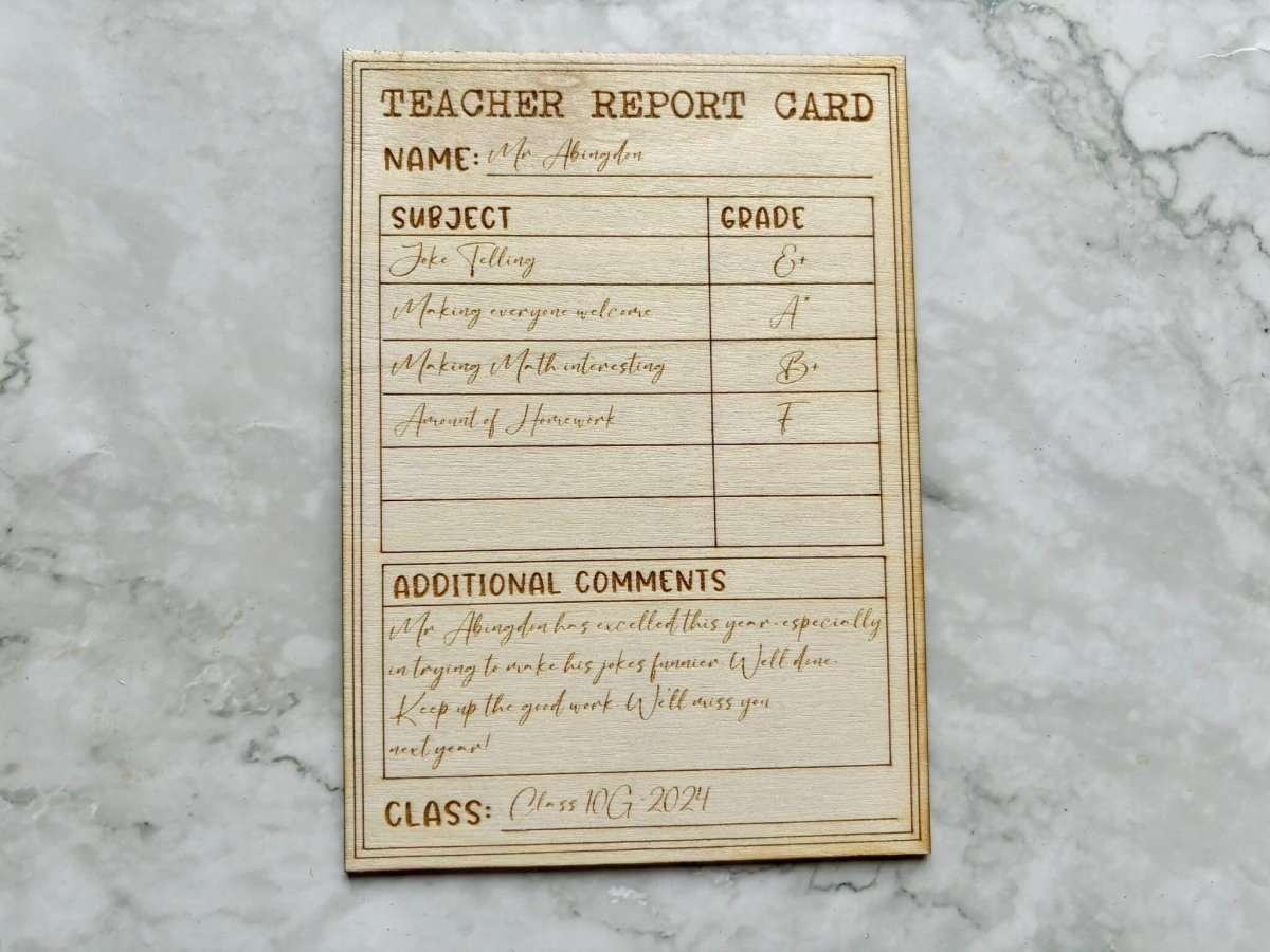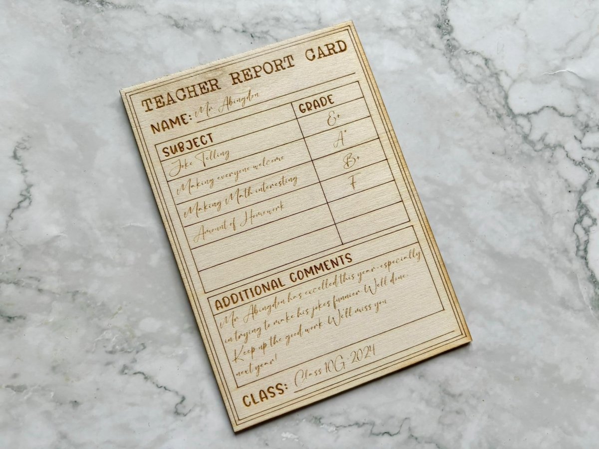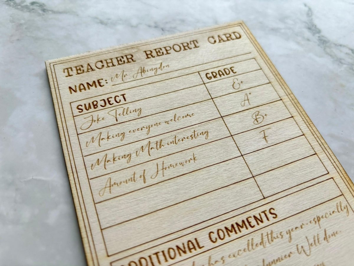 Personalised Engraved Teacher Report Card, Funny Teacher Gifts, Gift for Teachers